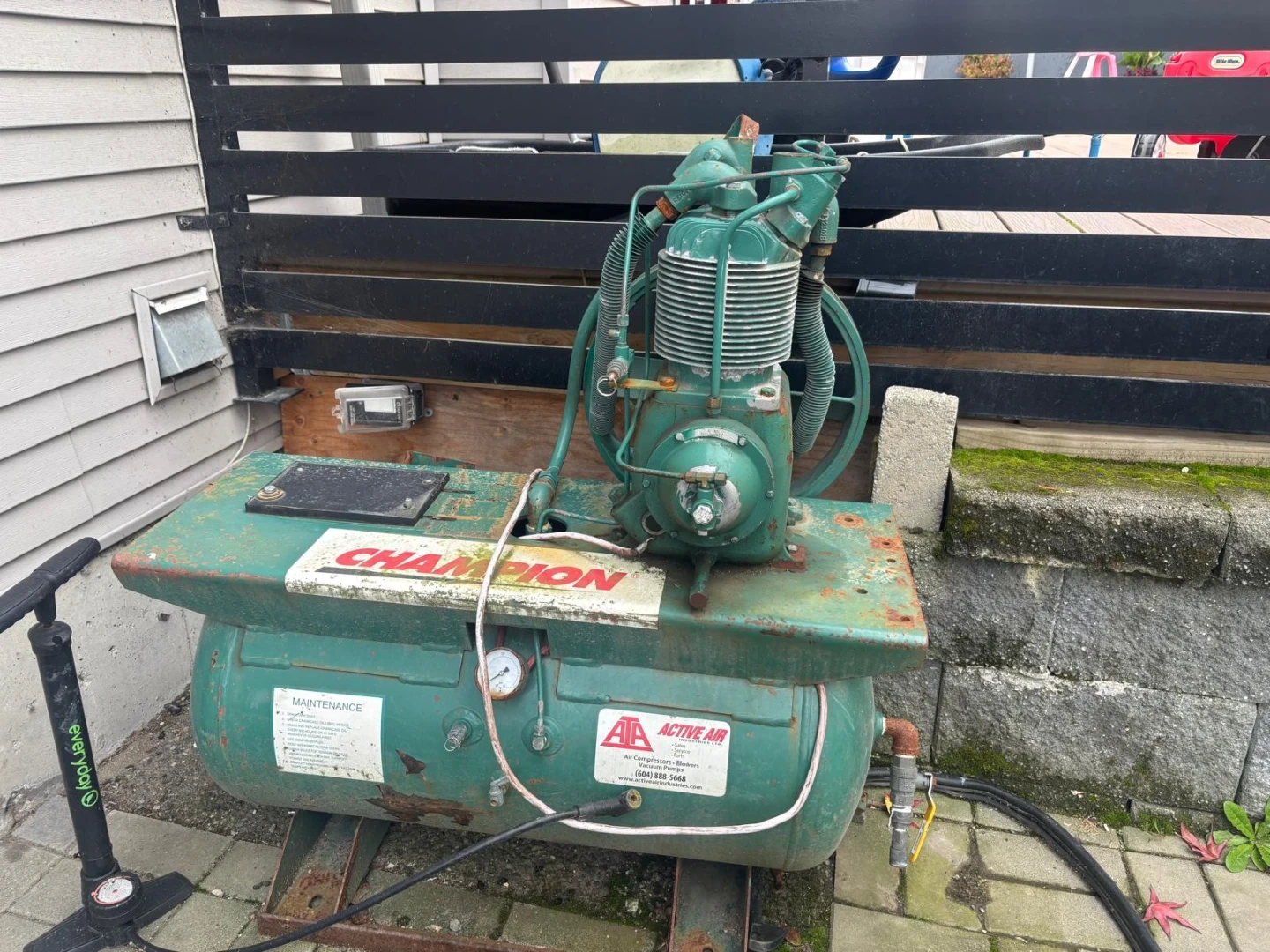 5Selling a Champion air compressor. It shows signs of wear and rust, but it's still functional. Great for someone who needs a reliable compressor for their garage or workshop