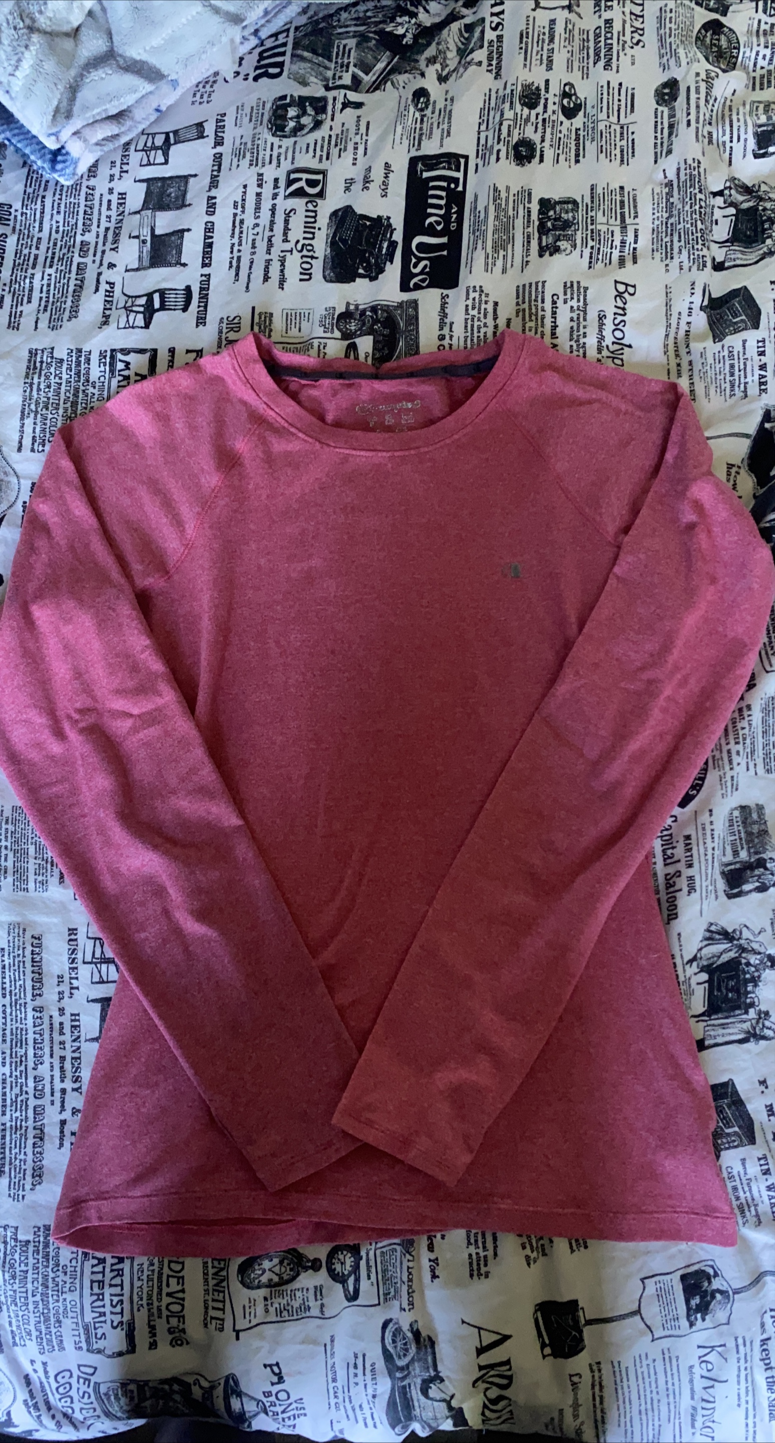 10Cozy Champion long sleeve shirt in a lovely heathered pink! It's a size small and perfect for layering or wearing on its own. Great for workouts or just lounging around the house!