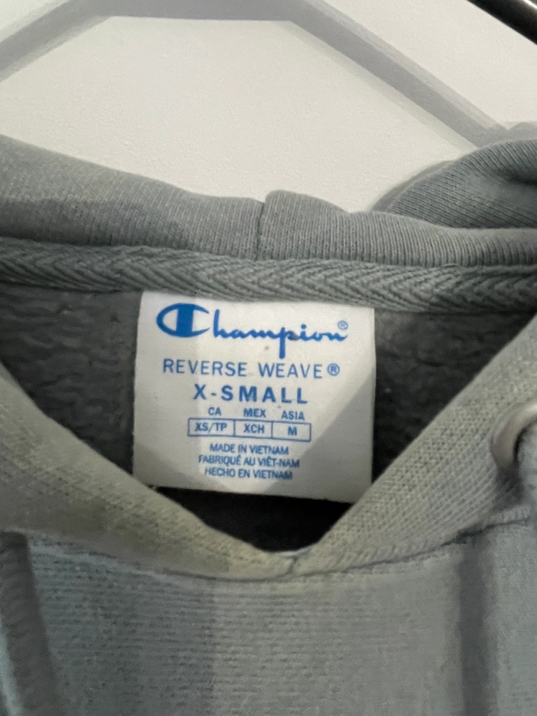 Women's Champion Reverse Weave hoodie X-Small, can fit a small Blueish grey colour