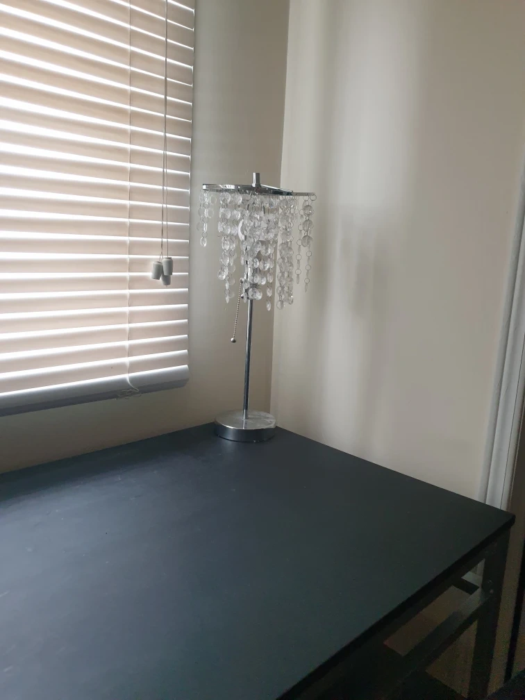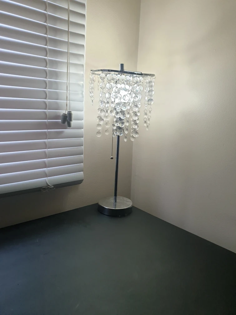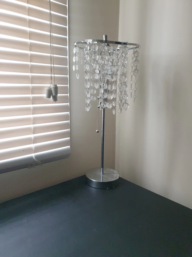 Selling a chandelier table lamp! It has a silver stand and would look great on a desk or side table