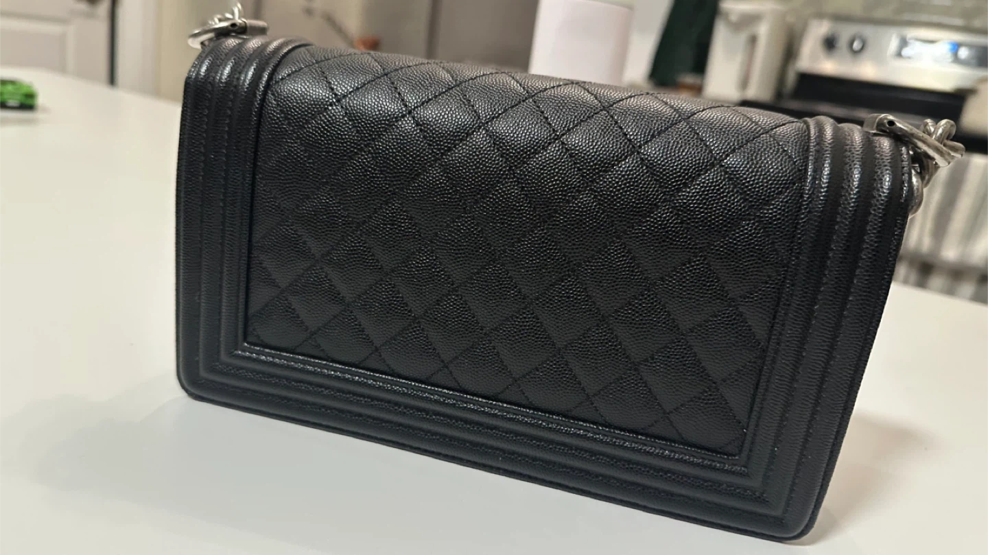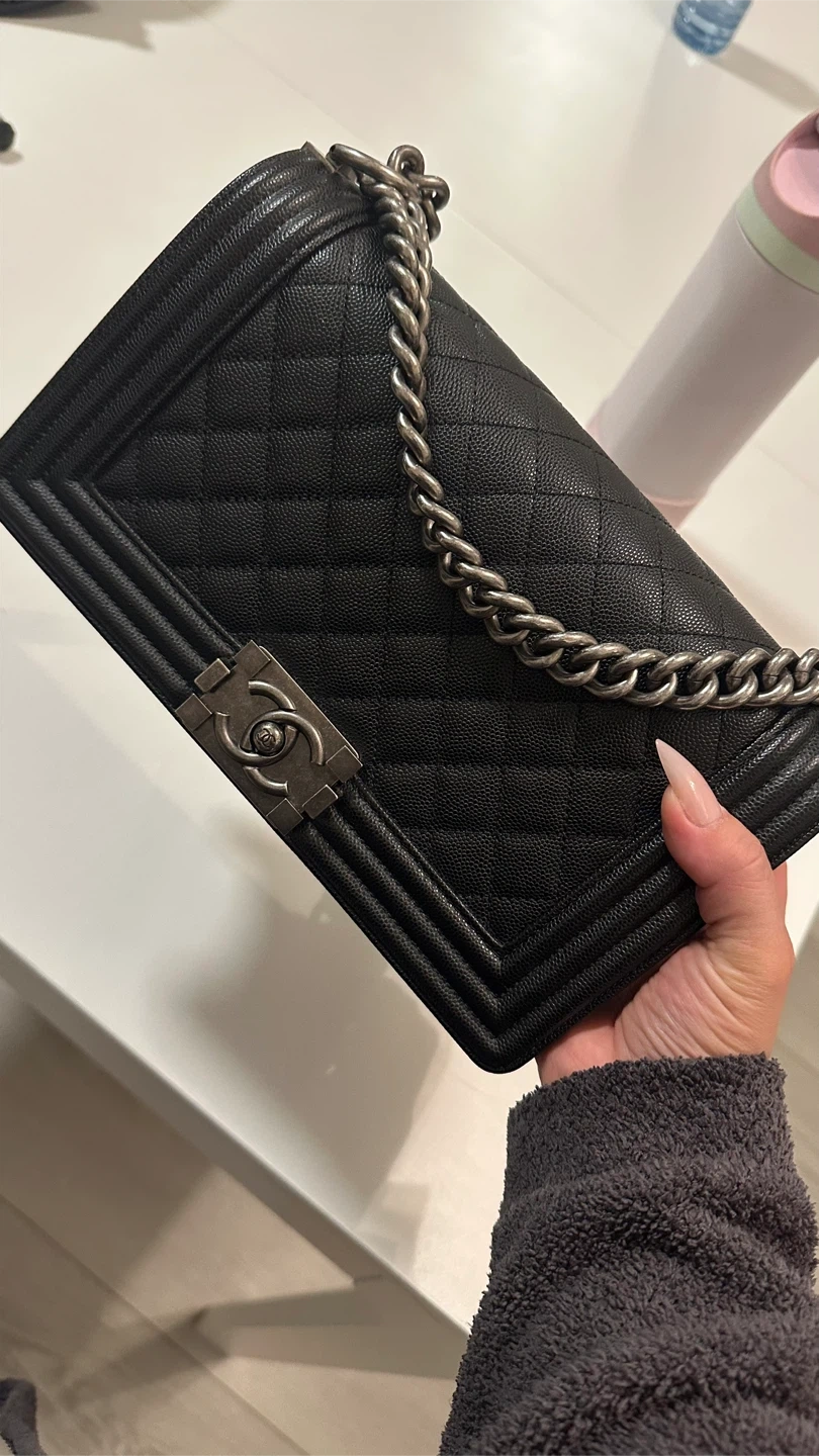 10Selling a beautiful authentic Chanel Boy Bag in black caviar leather with ruthenium hardware . It's in great condition and has a classic, timeless look. The bag features the iconic quilted design and is a must have for any bag lovers . Serious inquiries only please