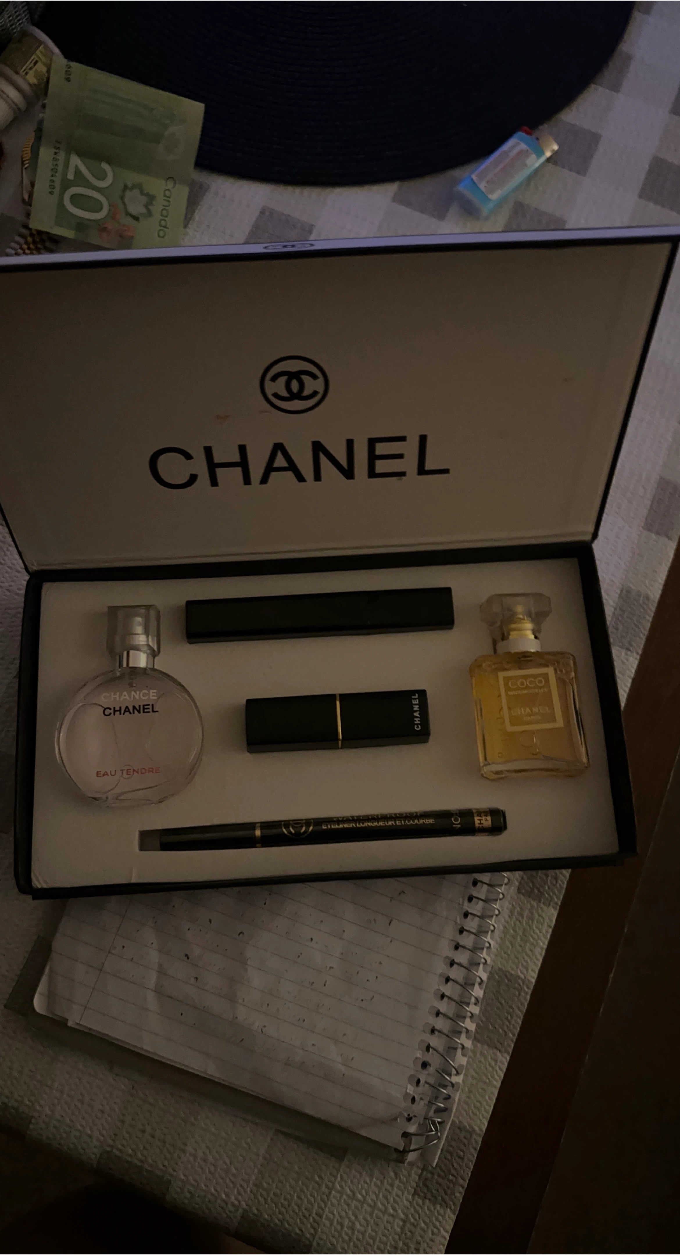 65Selling a lovely Chanel gift set! It includes Chance Eau Tendre and Coco perfumes, along with lipstick, eyeliner and mascara. The set comes in its original Chanel box, making it perfect as a gift or a treat for yourself.
