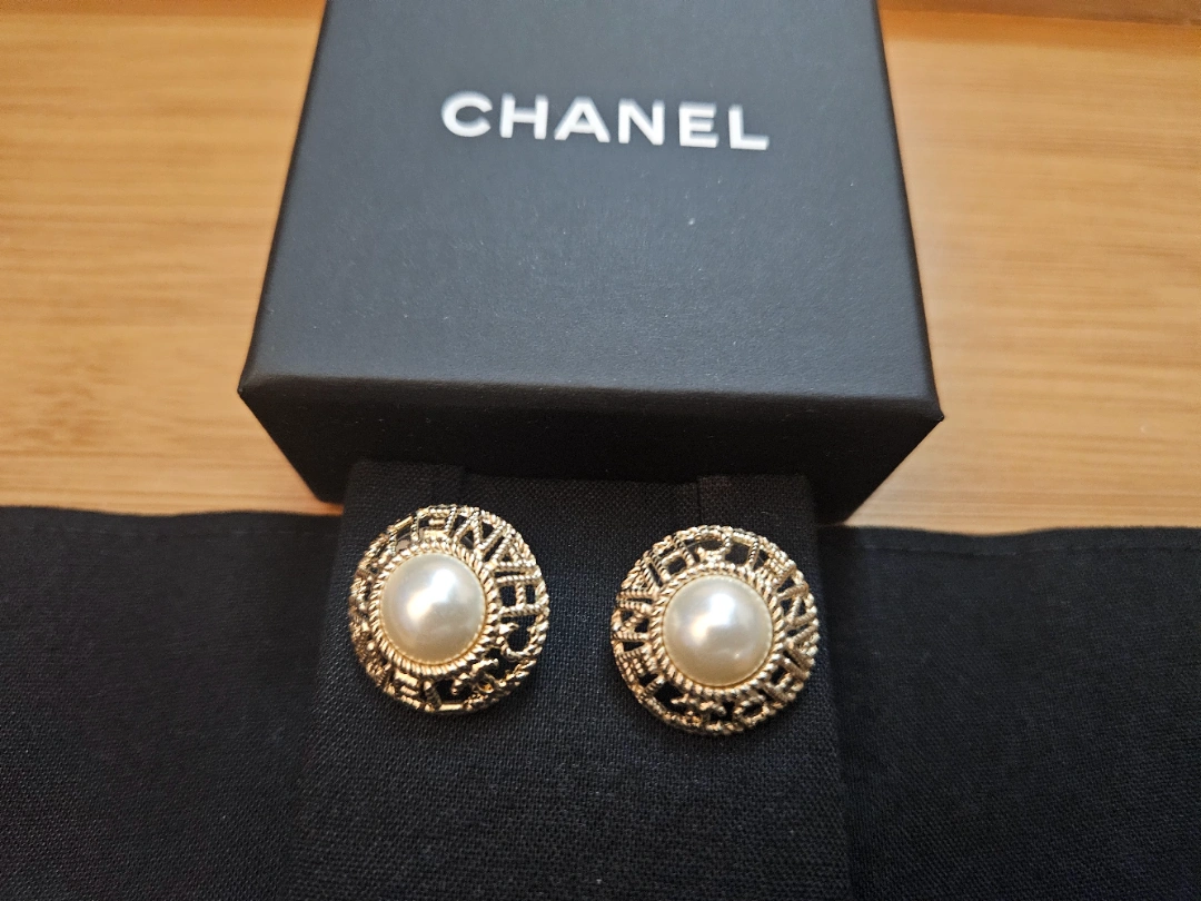 Selling a pair of beautiful Chanel earrings! They feature a gold-tone design with a faux pearl centre. Comes with the original box.