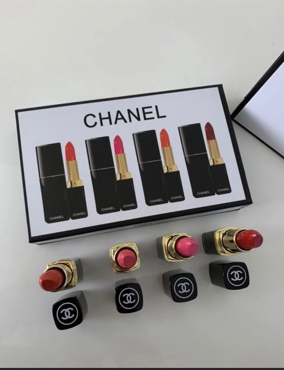 94Selling a brand new Chanel lipstick set! It comes with four beautiful shades in a sleek black and gold design. The set includes the original box. Perfect for adding a touch of luxury to your makeup collection