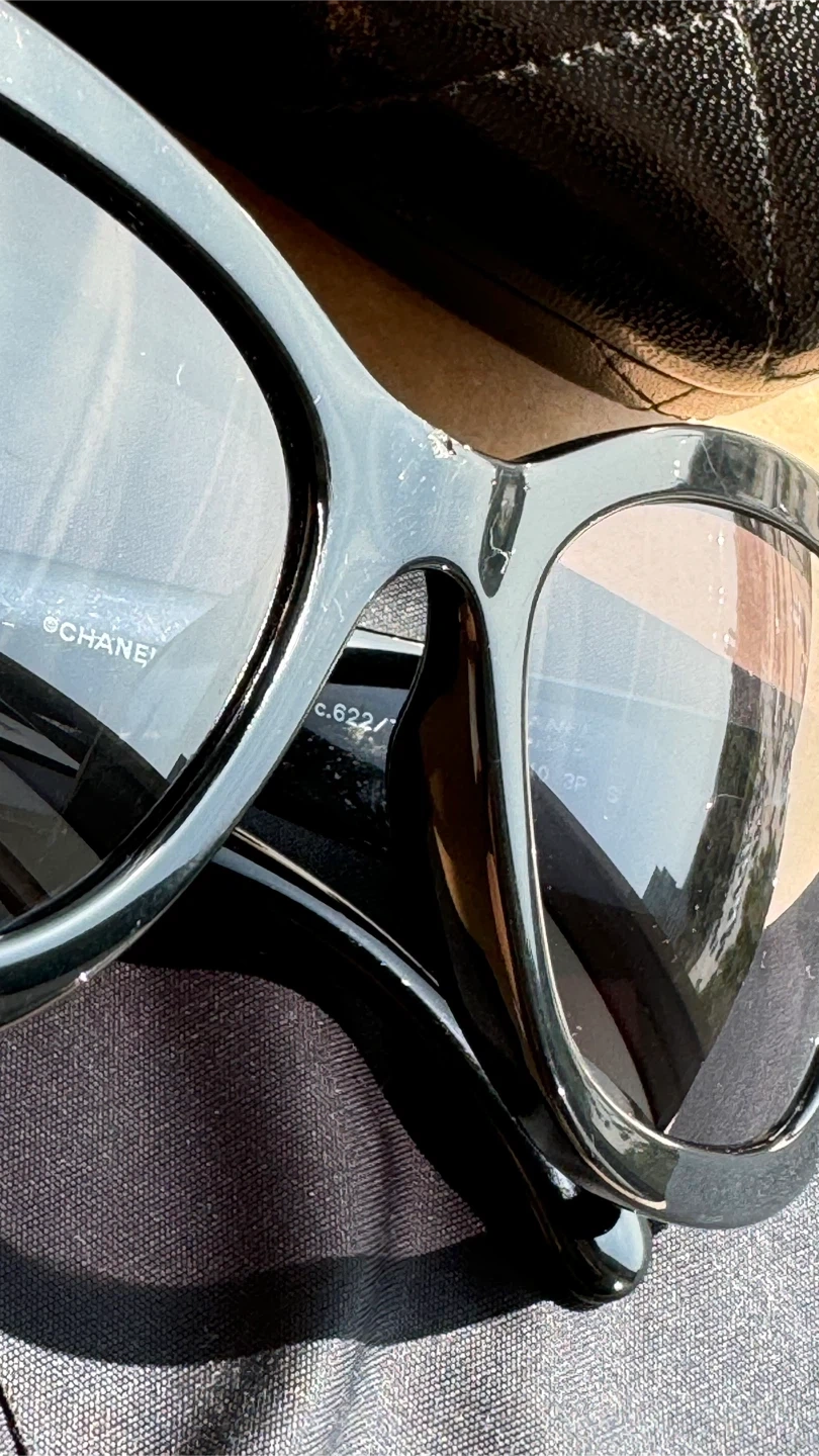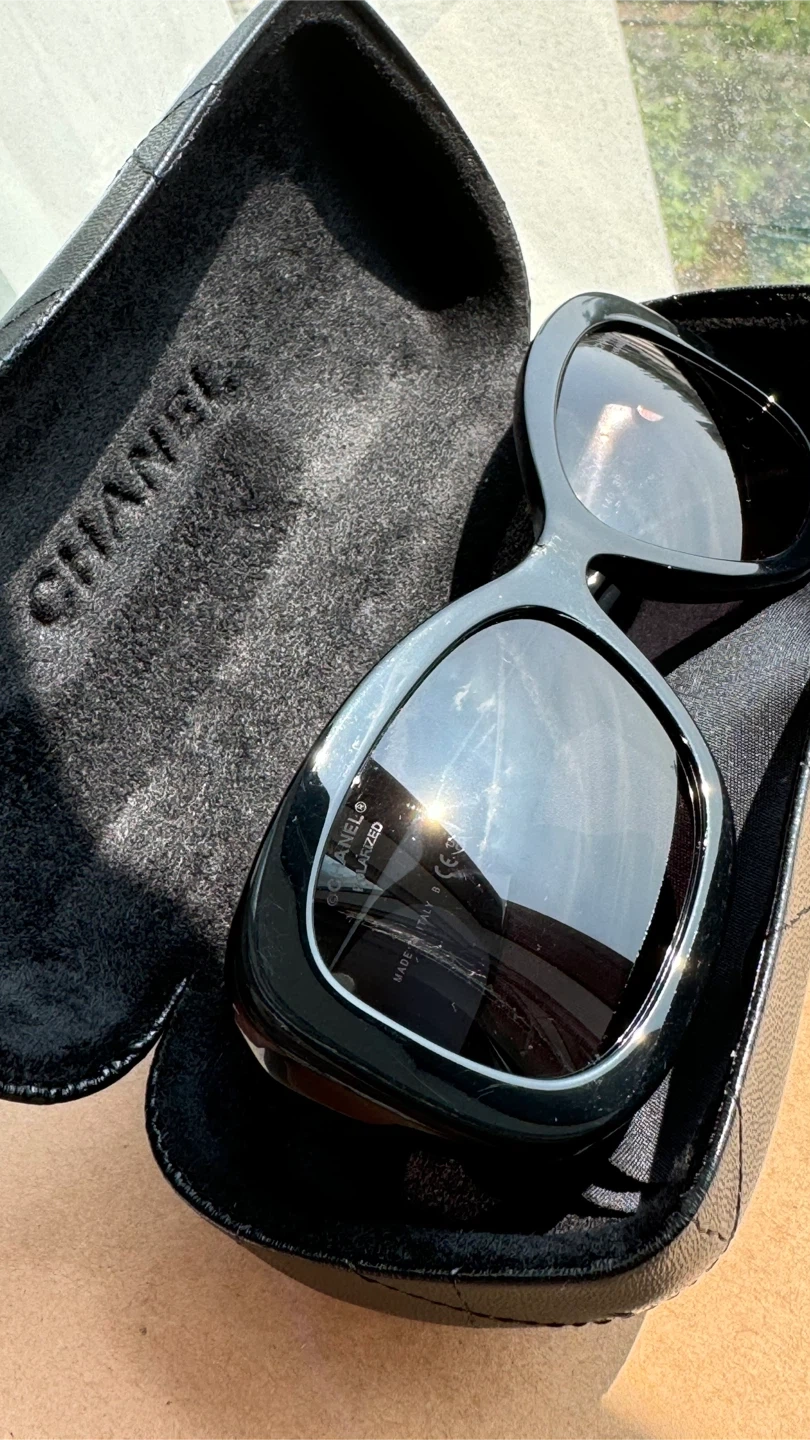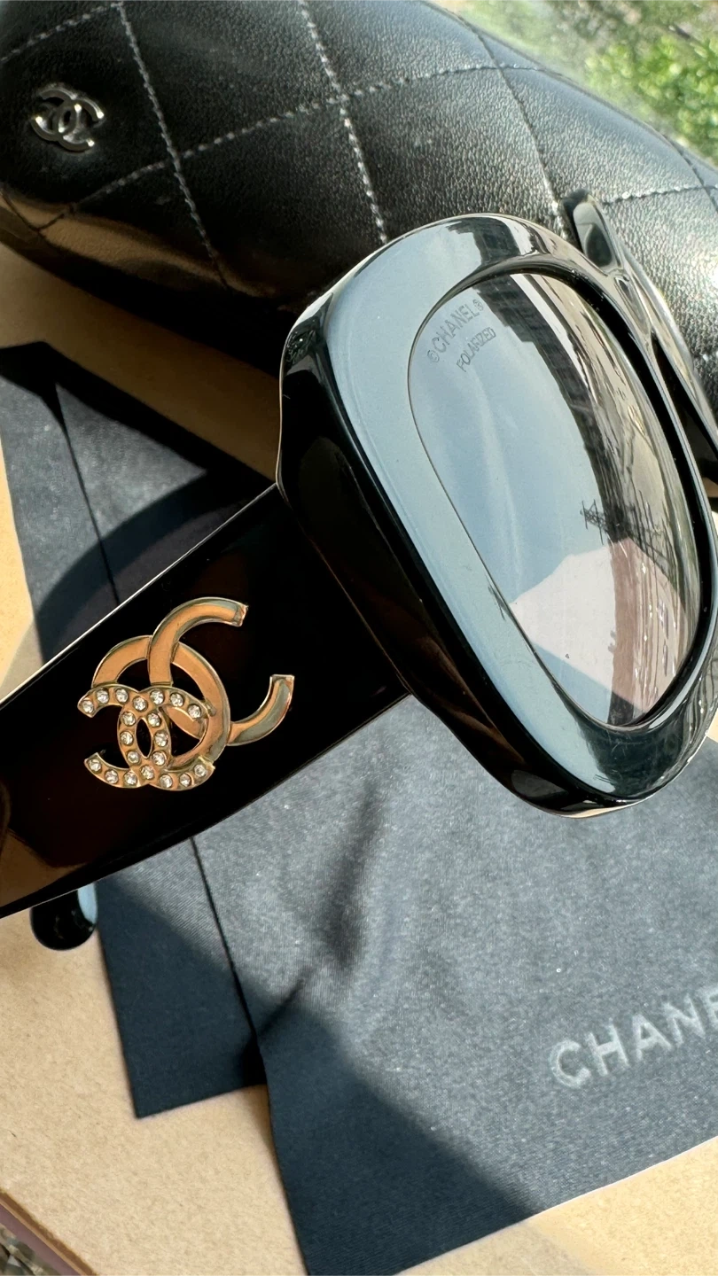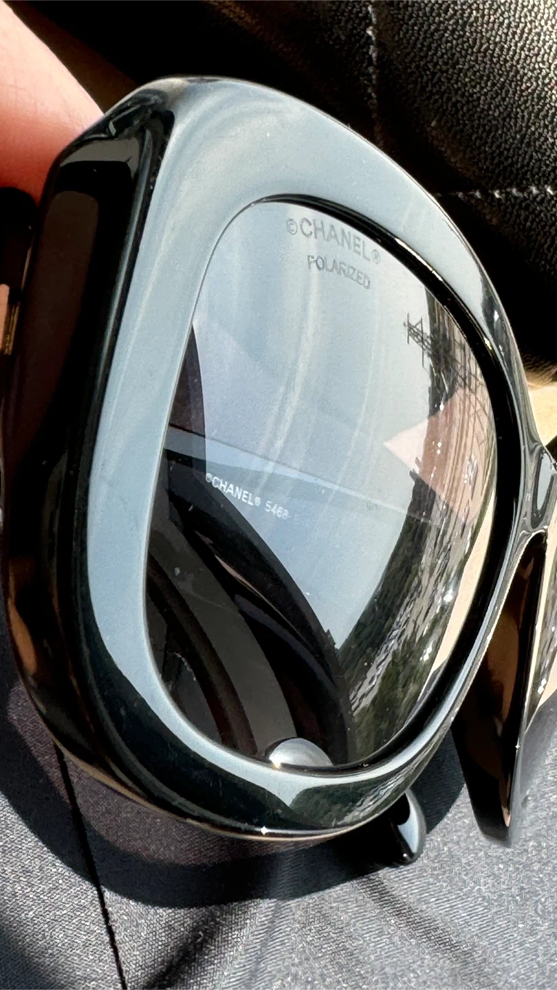 124CHANEL Polarized Sunglasses Black Women. Authentic 5468-B-A 622/T8 56•17 140 3P S Very good condition ( small chip on the front of the frame) Location Islington and Bloor