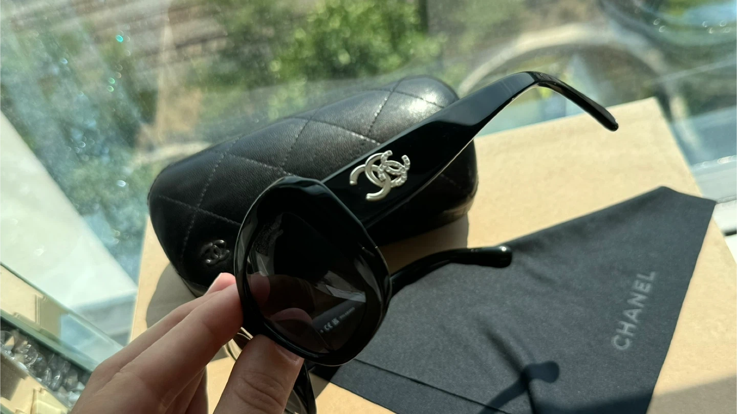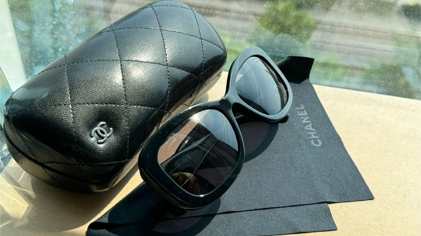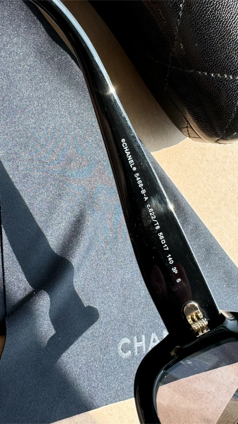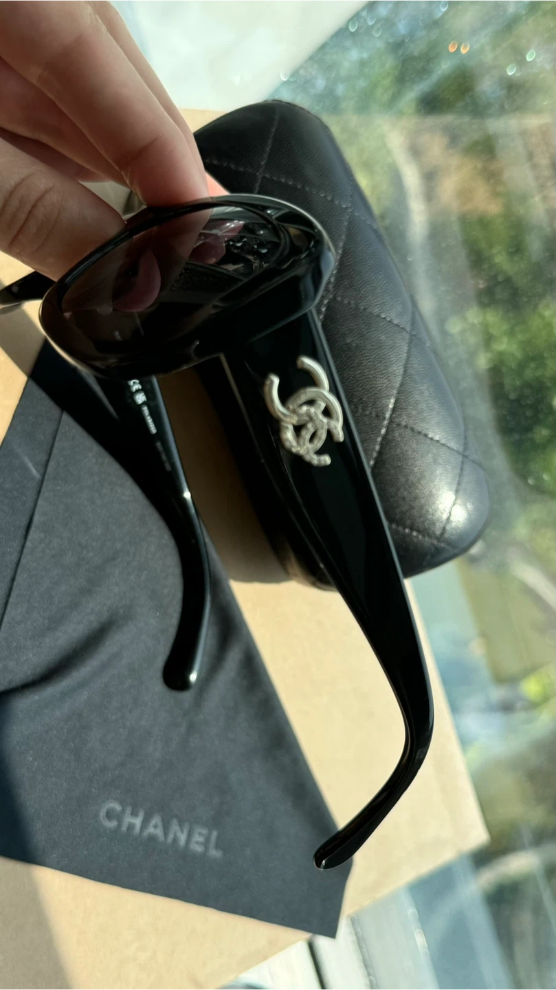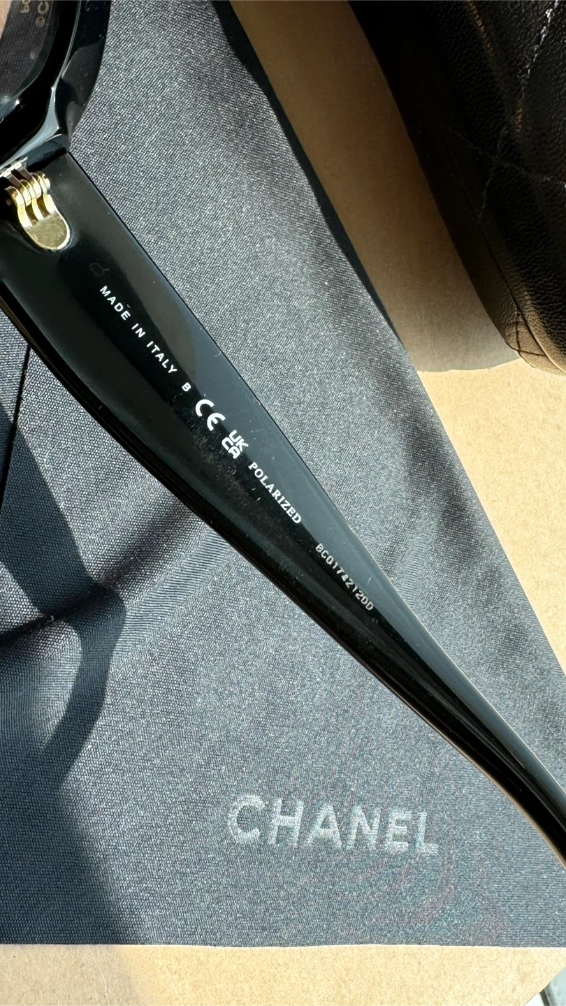 124CHANEL Polarized Sunglasses Black Women. Authentic 5468-B-A 622/T8 56•17 140 3P S Very good condition ( small chip on the front of the frame) Location Islington and Bloor