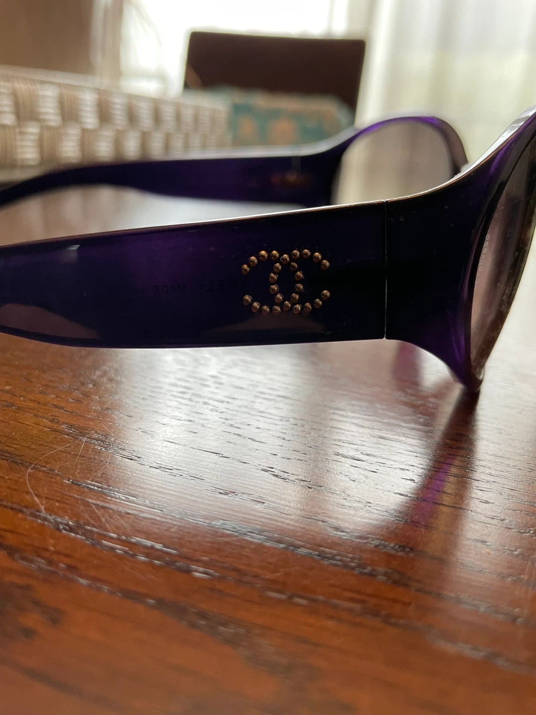 Selling a pair of Chanel sunglasses! They are purple and in great condition. A stylish accessory for any sunny day!