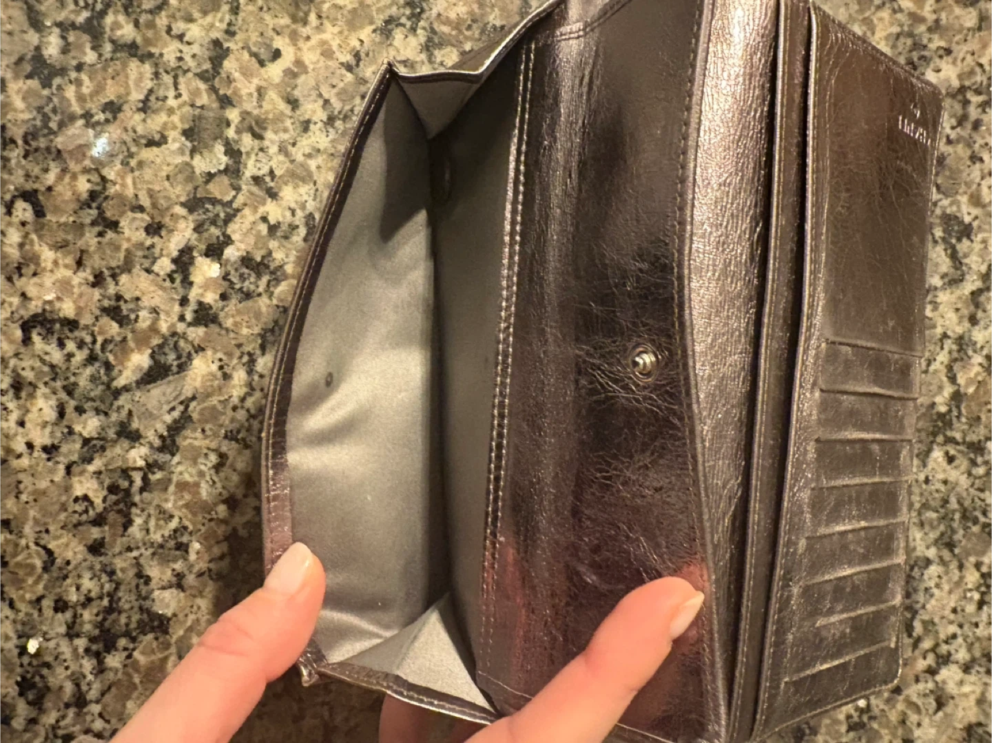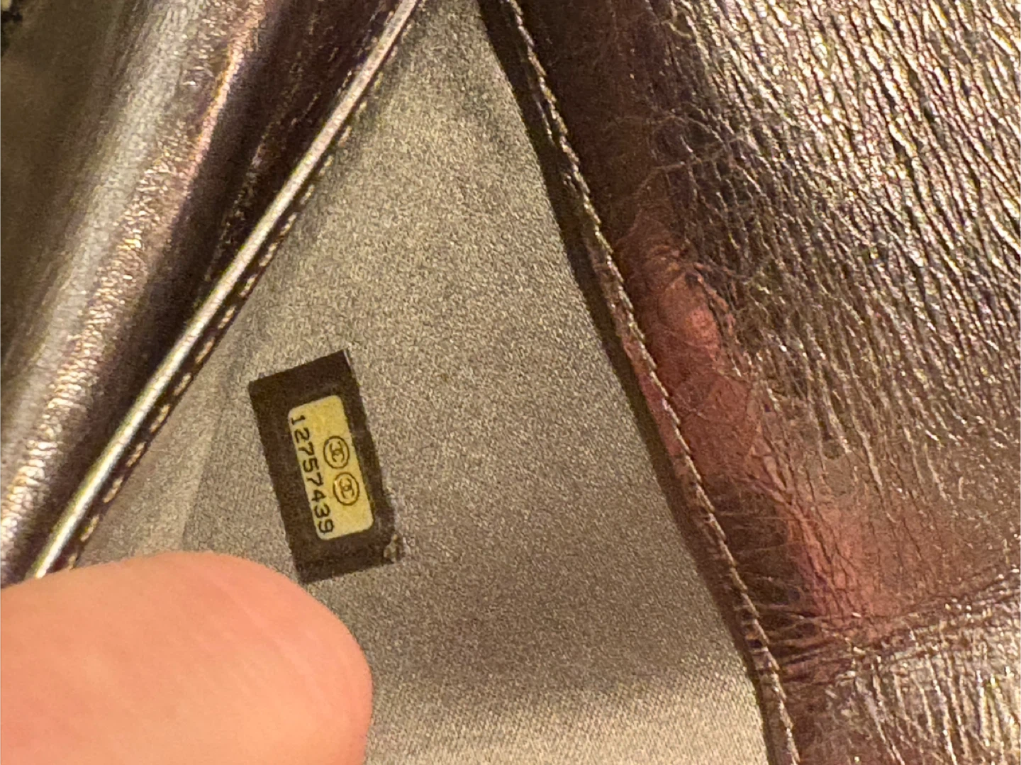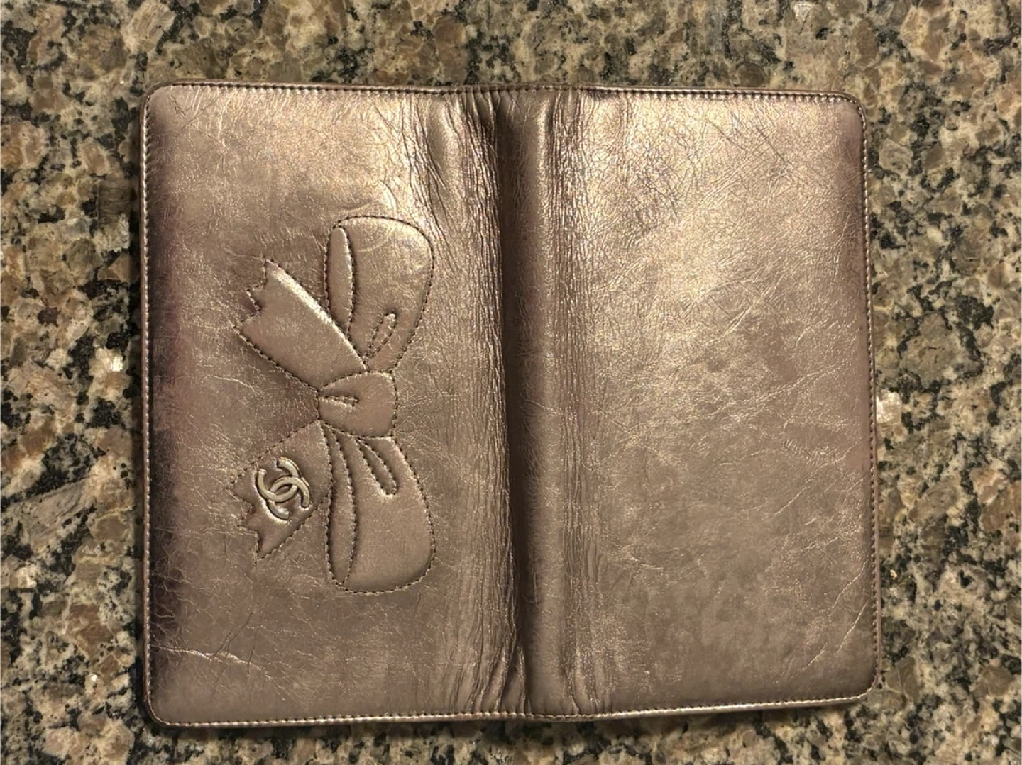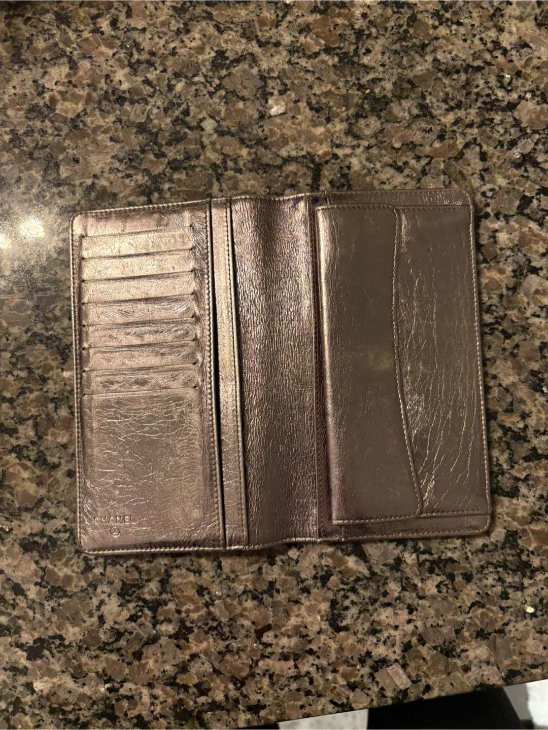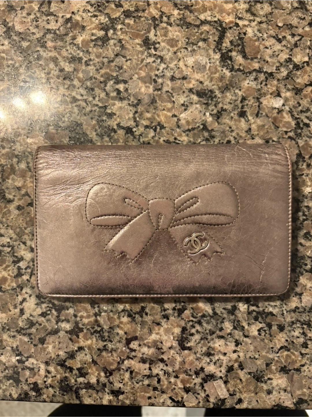 65Selling a Chanel wallet in used condition. It has a bow design on the front and a snap closure. Serial number 12757439