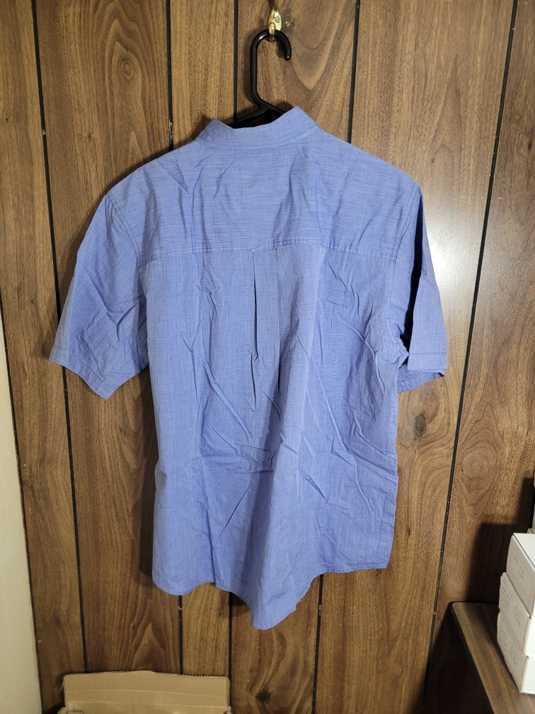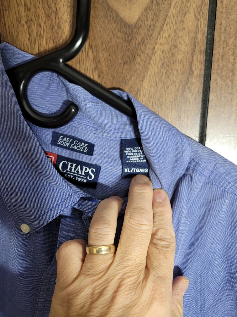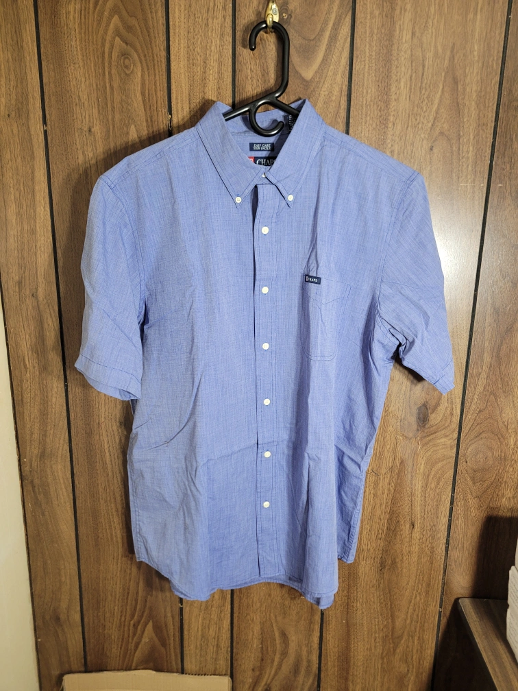 197Here's a Chaps short-sleeve shirt in size XL. It's a nice light blue colour and made of 60% cotton. Easy care!