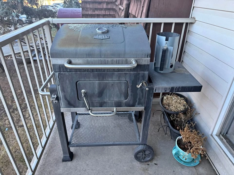10Charcoal bbq, we have used it a couple times but unfortunately could never quite figure it out and would like to get a gas bbq. It has been outside without a cover so it is quite weathered. Comes with a charcoal chimney. There are no pictures of the inside as I am currently cleaning out. Must be able to come pick it up as I only have a car. $100 OBO