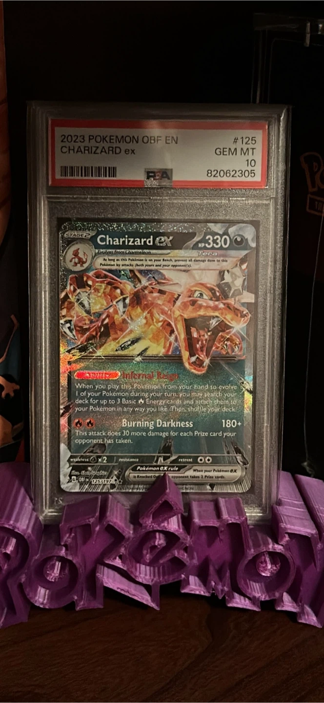 Selling a 2023 Pokemon Charizard ex card from the OBF EN set. It's graded as GEM MT 10.