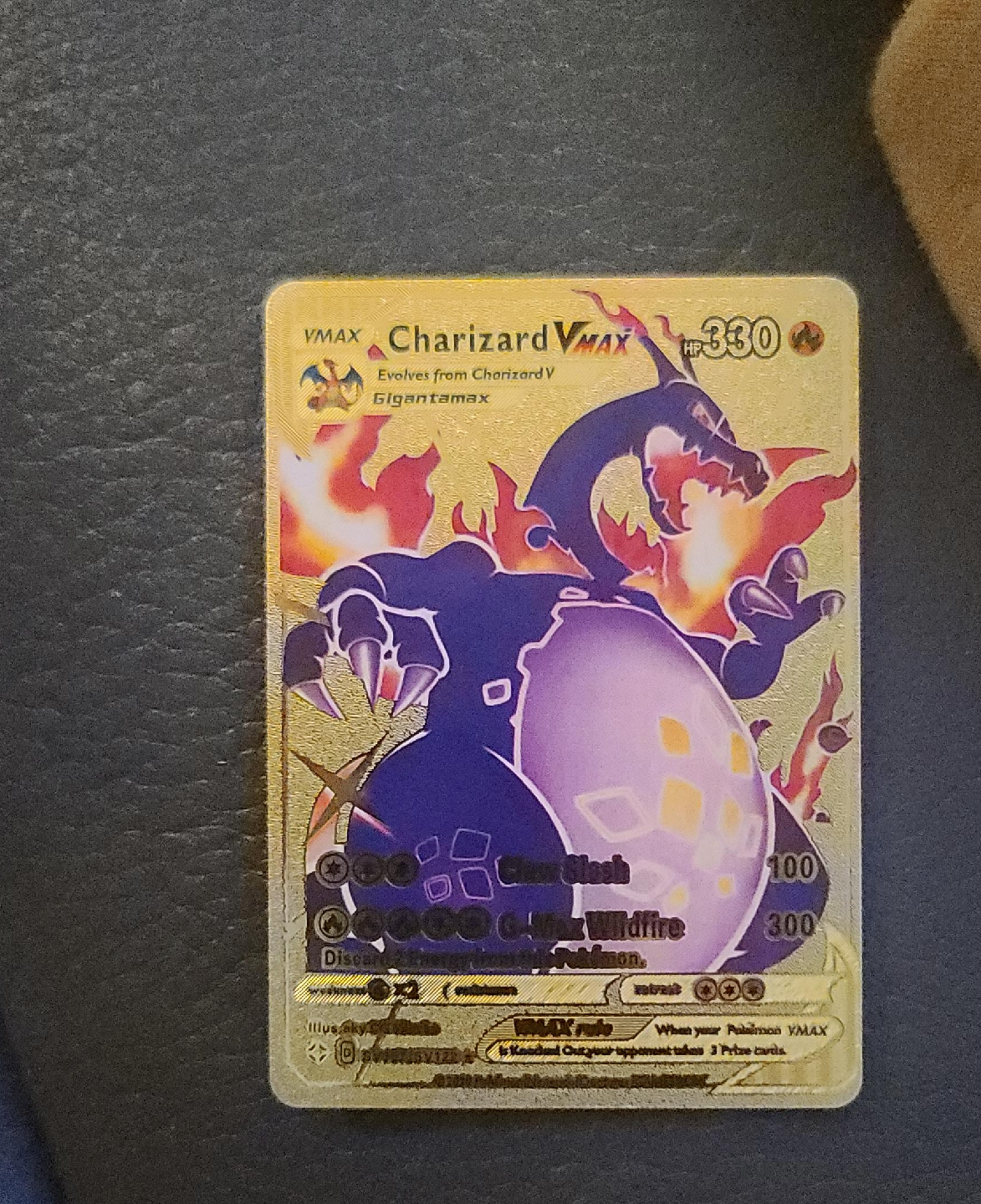 25Selling a Charizard VMAX gold card! It's in great shape and ready for a new home. A must-have for any Pokémon collector!