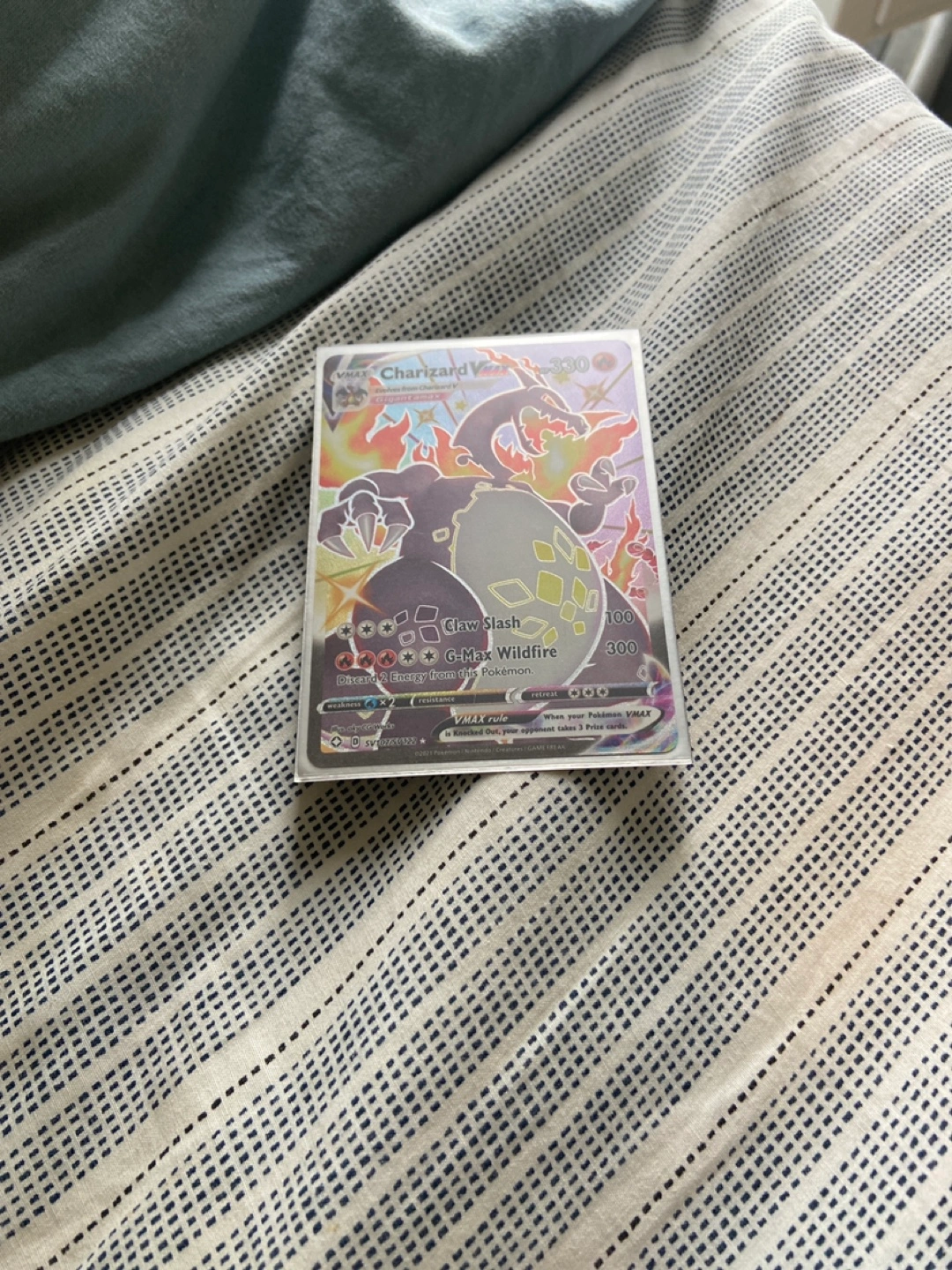 Selling a Charizard VMAX Pokemon card in great condition! It features Claw Slash and G-Max Wildfire attacks