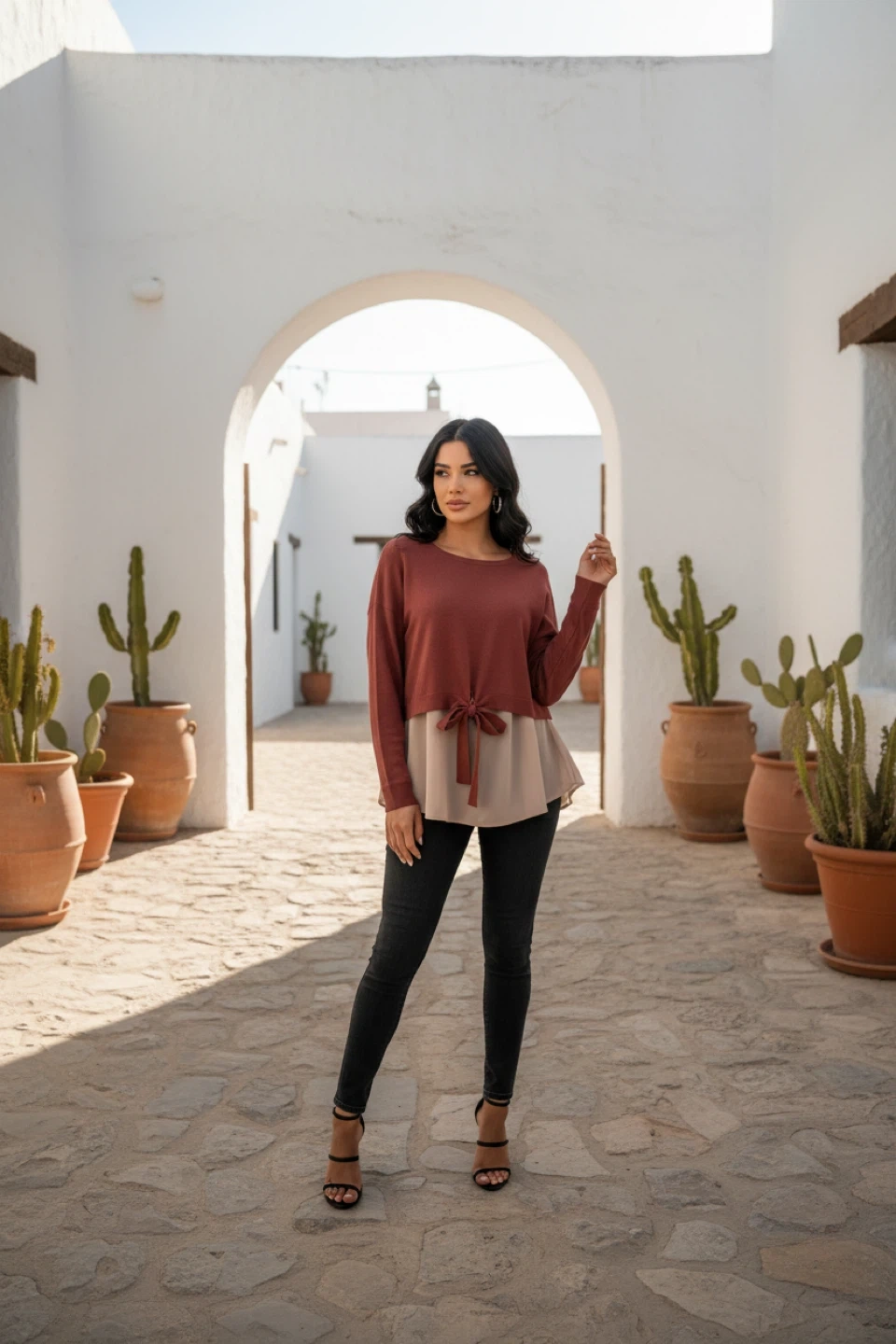 10This is a Charlie Paige top in size L. It has a nice tie detail at the waist. The top is a beautiful blend of colours, perfect for any occasion!