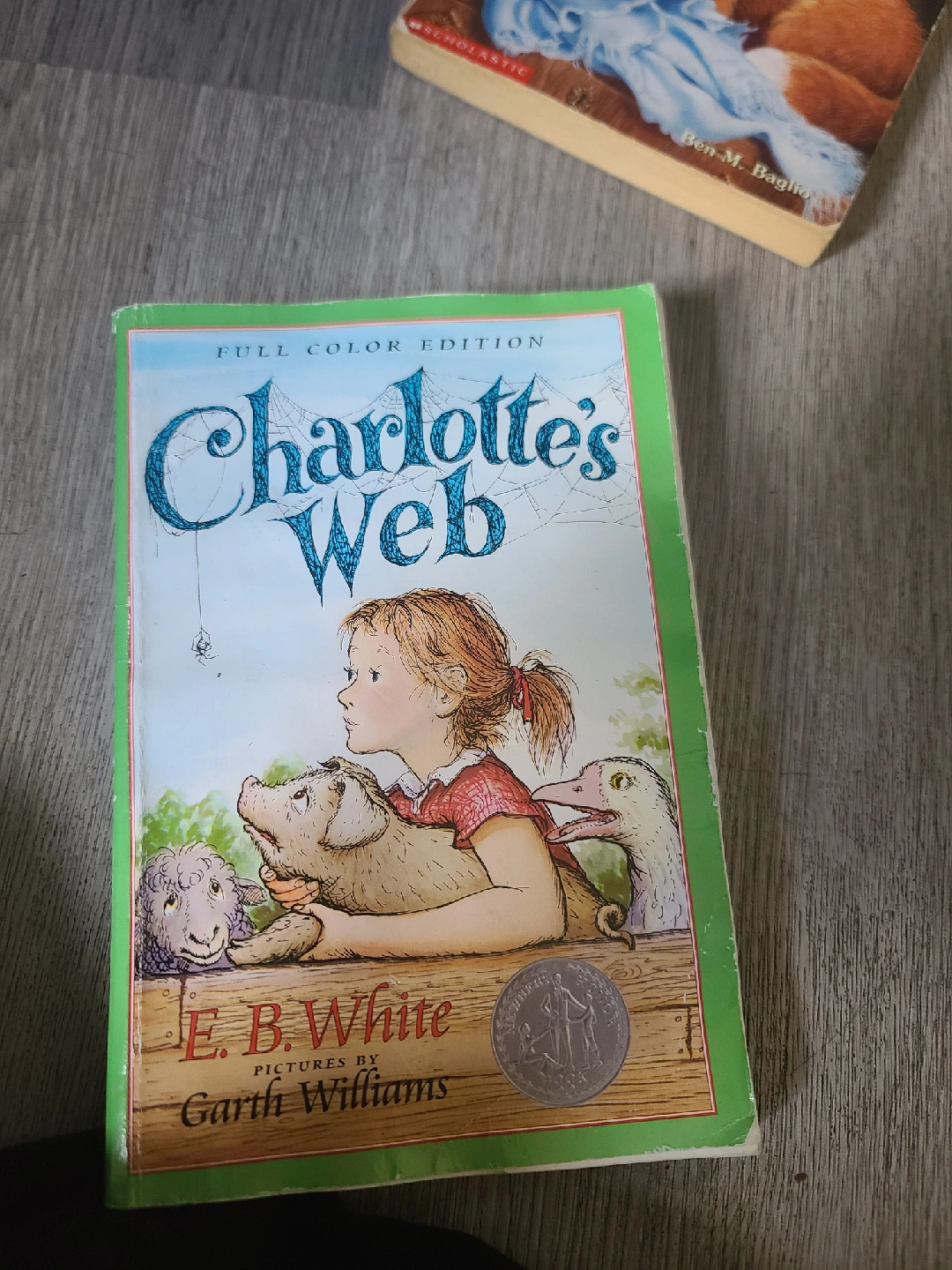 10Selling a copy of Charlotte's Web by E.B. White! This is a full colour edition with pictures by Garth Williams. The cover art is renewed 1980 and the watercolors are copyright 1999. A classic story for all ages