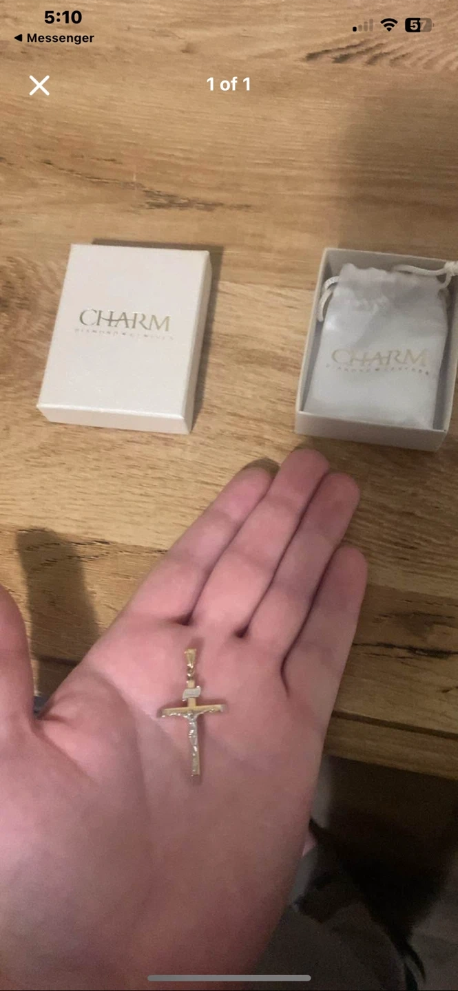 10Charm Diamond Centres cross pendant with box and pouch included! It appears to be in good condition. Solid 10k yellow and white gold Good condition retail is $280 originally $359 I paid $225 It weighs 1.5 grams which is $110 gold value in canadian i’d charge $30 delivery