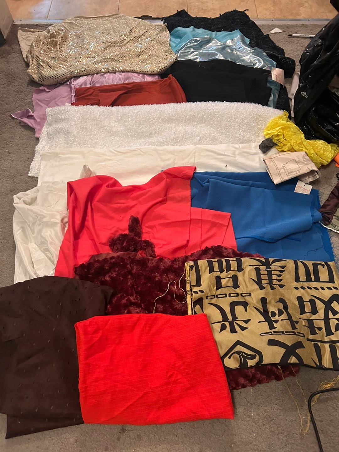 245I have two big bags of remnants. Some are full cuts, enough to sew clothing patterns ( blouses, skirts) with, and some are cuts and “scraps”. Perfect for anyone crafty. There’s faux leather and faux fur Stretchy Lace Fun prints Knits All kinds of funky prints Silk And so much more It all has to go, so if you’re into this sort of thing, this could be your treasure. I’m Looking to sell the entire lot for $50
