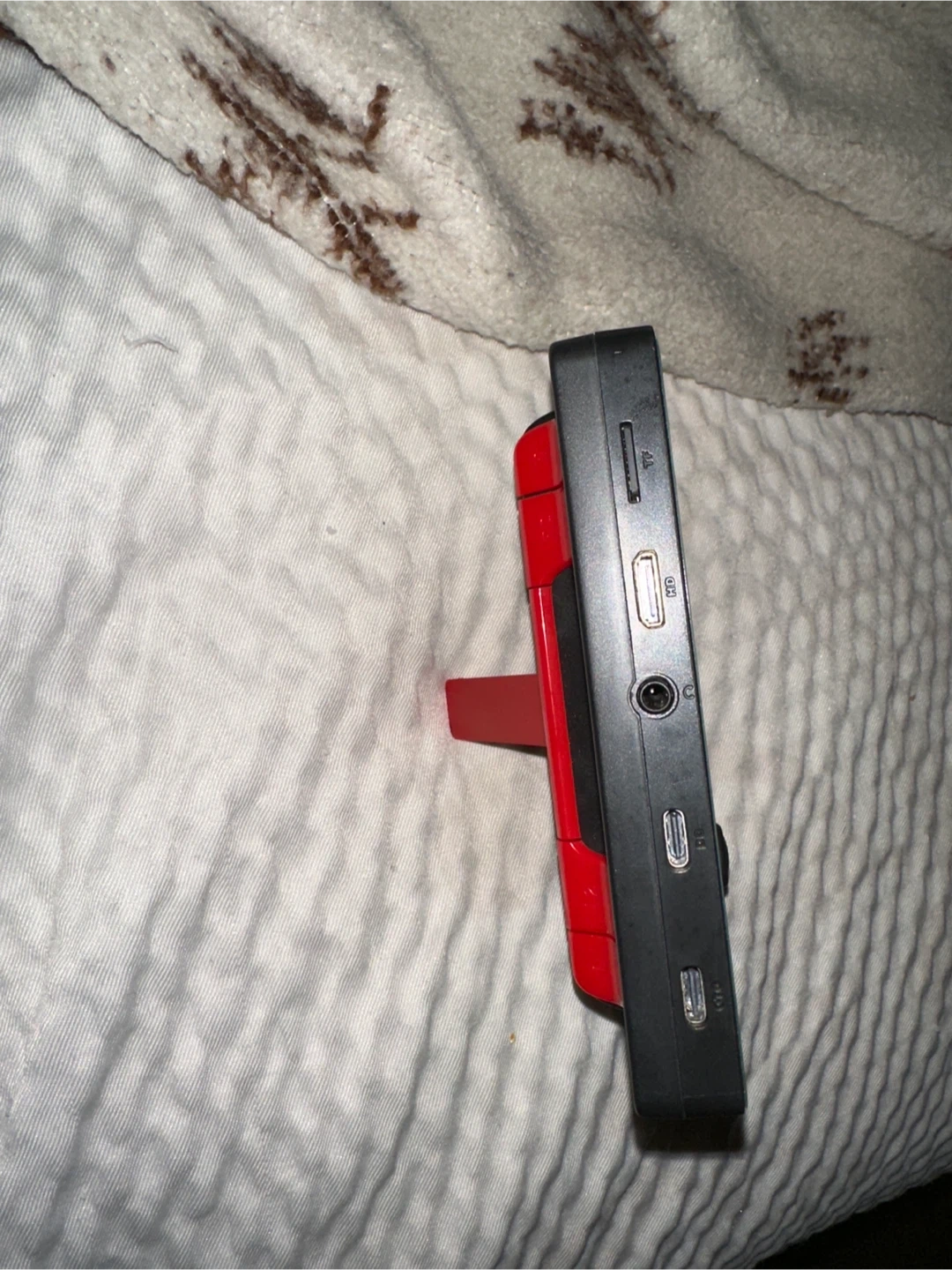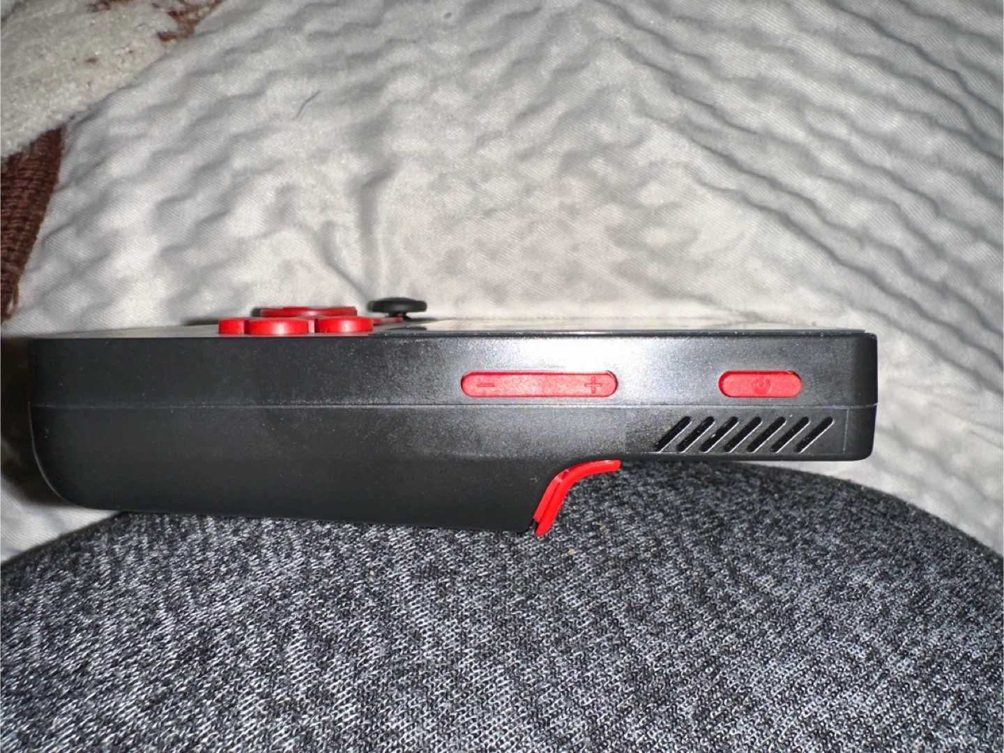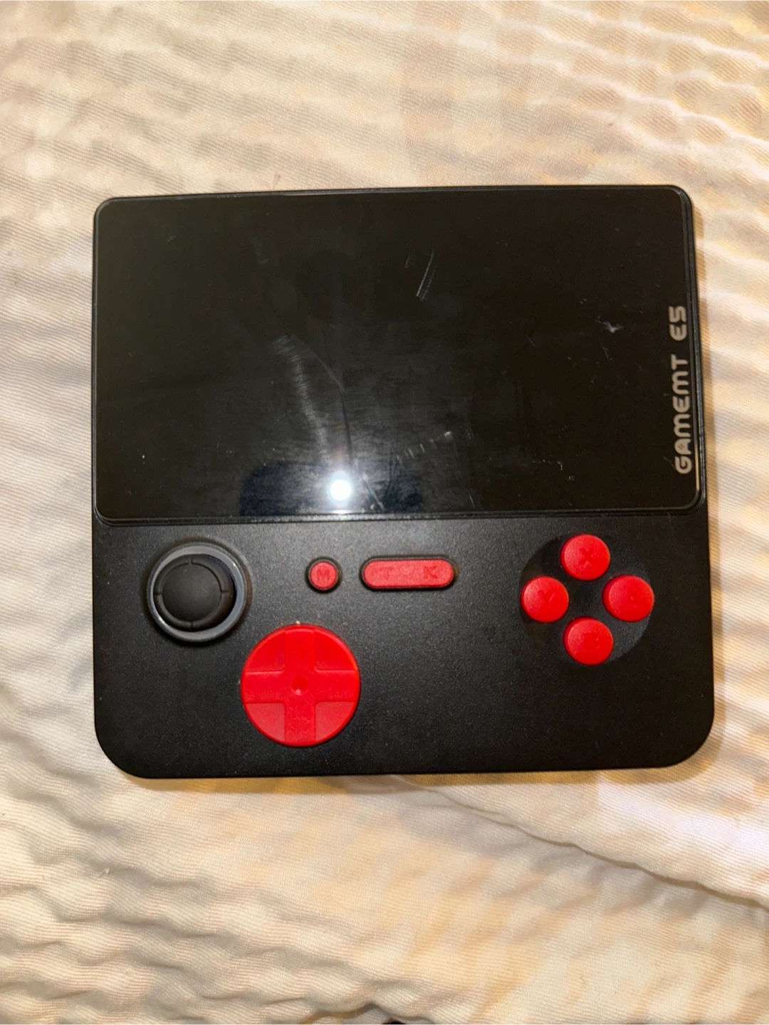 GAMEYE ES handheld game console in black. This device features a directional pad, action buttons, and a joystick. It has a screen and various ports for connectivity. Has over 2,000 games