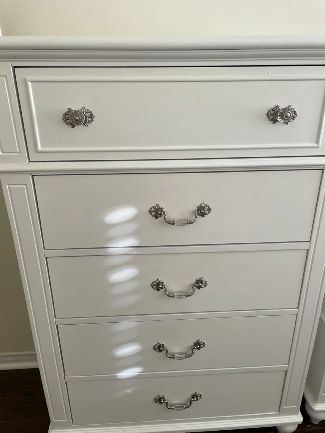 White 5-Drawer Dresser with Decorative Hardware