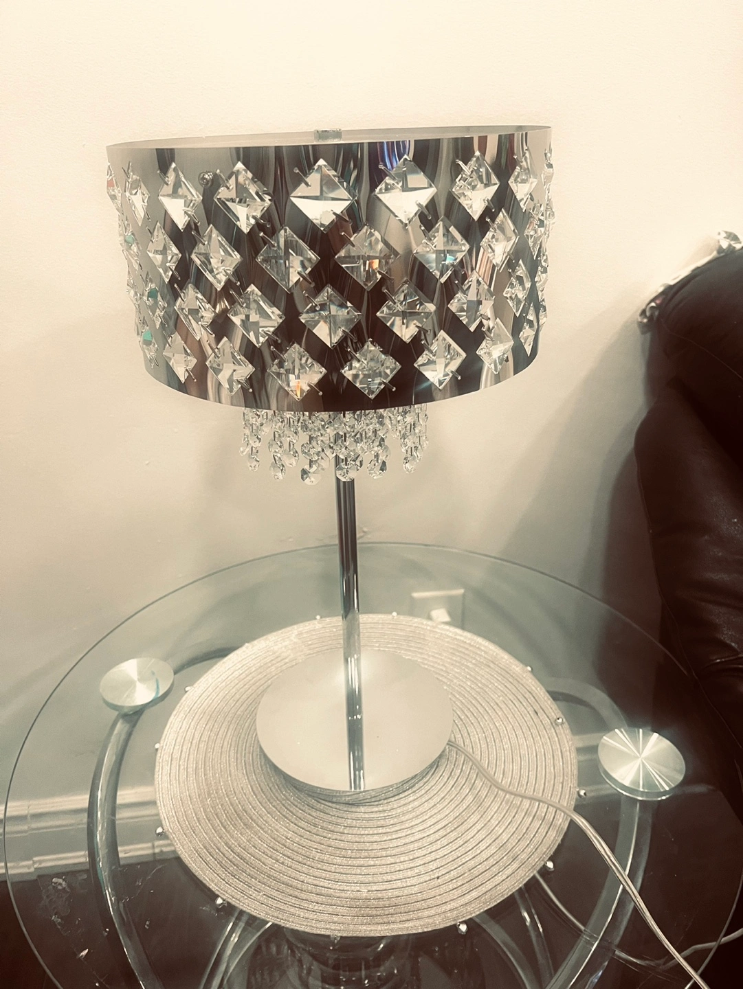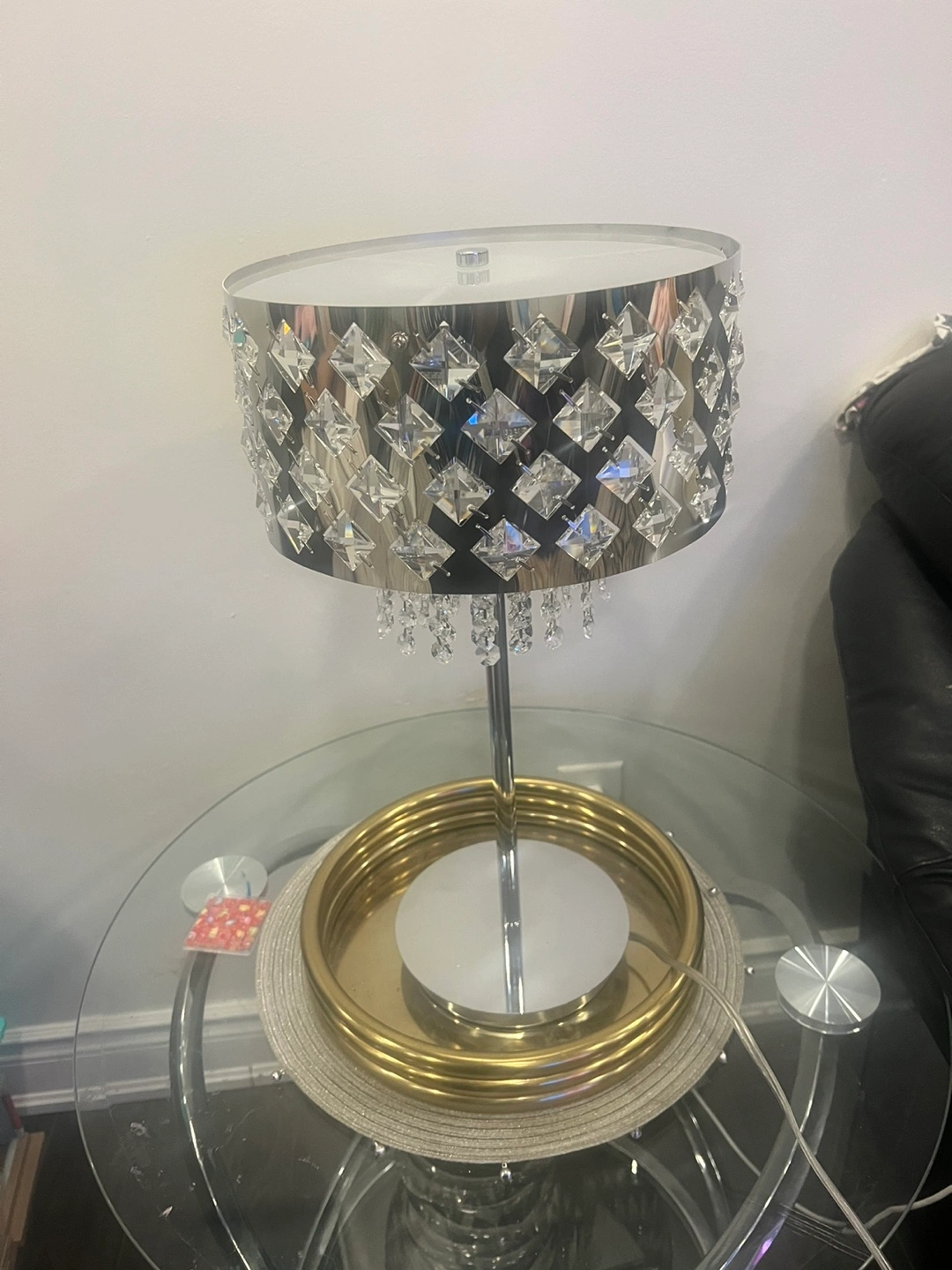 Selling a beautiful crystal table lamp! It has a silver finish and would add a touch of glamour to any room