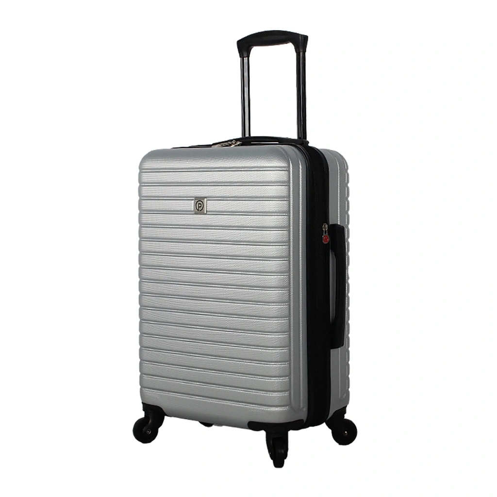 Selling a very gently used checked in luggage in silver. It's in great shape and ready for your next trip! Features a retractable handle and smooth-rolling wheels.