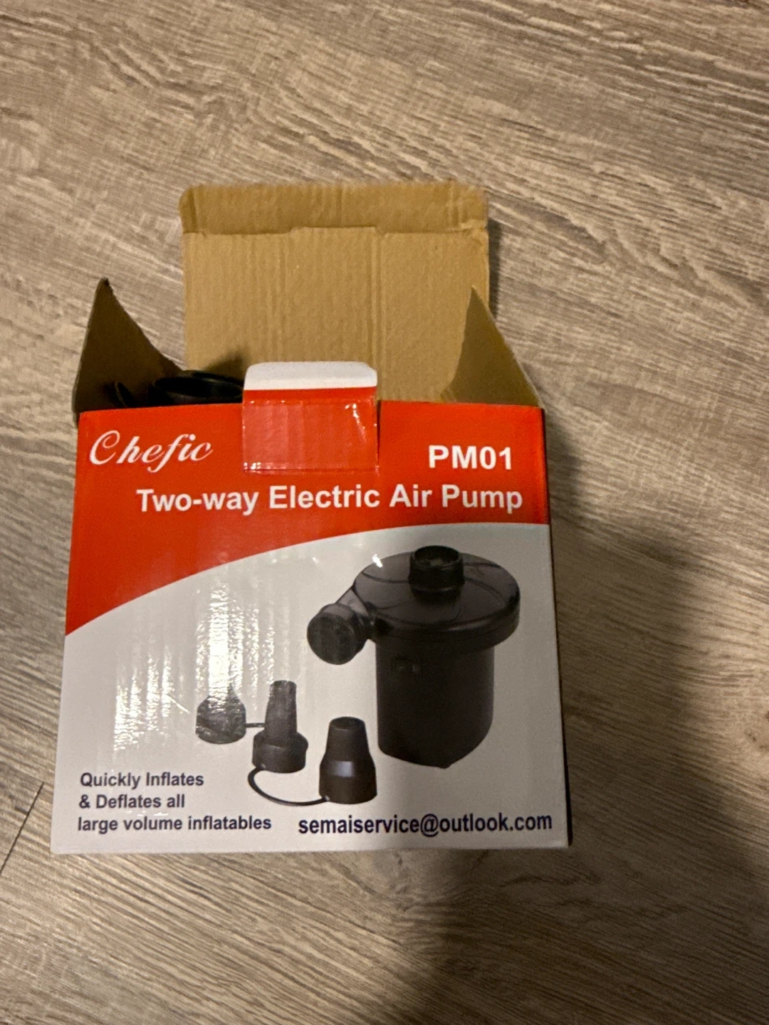 Selling a brand new Chefic Two-way Electric Air Pump, model PM01. It quickly inflates and deflates all large volume inflatables. Comes in its original box