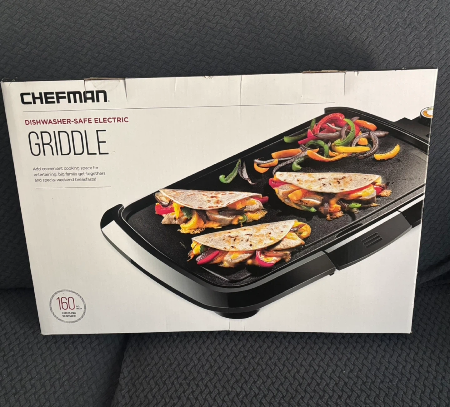 10BNIB. Chefman electric griddle is dishwasher-safe, with following features: - 16" x 10" cooking surface - Adjustable temperature control - Drip tray that removes and cleans easily