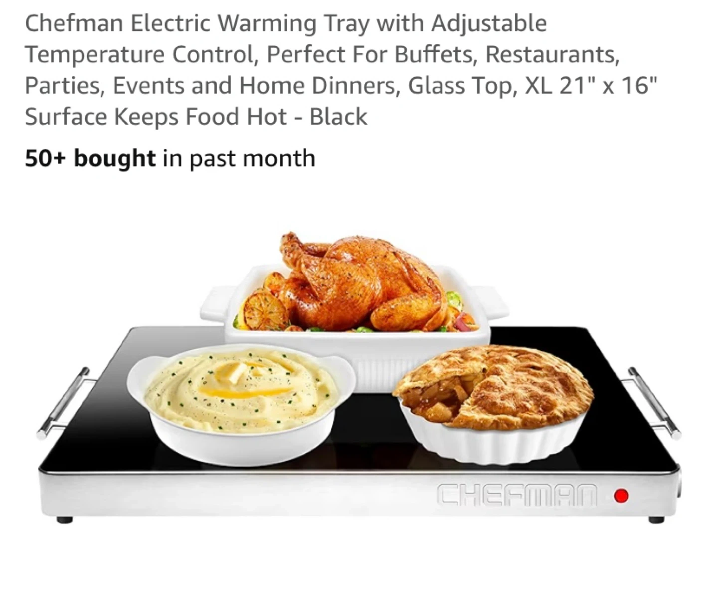 Chefman Electric Warming Tray Adjustable Temperature Control