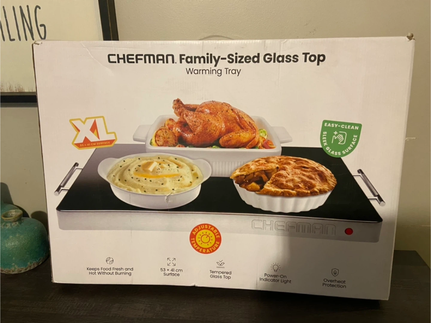 291Chefman Electric Warming Tray with Adjustable Temperature Control 21” x 16” Excellent condition $40 (retail $80 plus tax) Pickup in Whitby