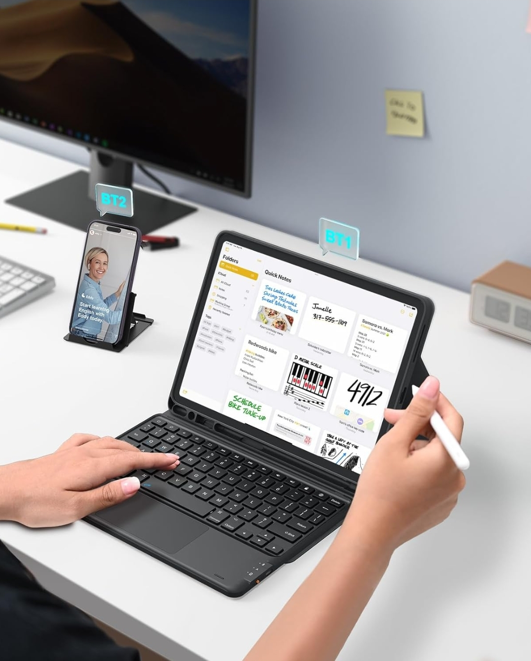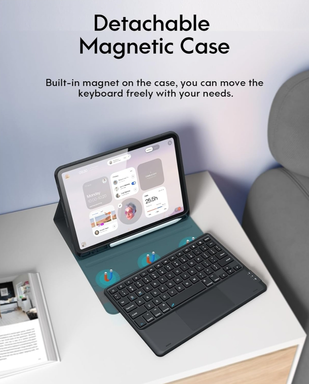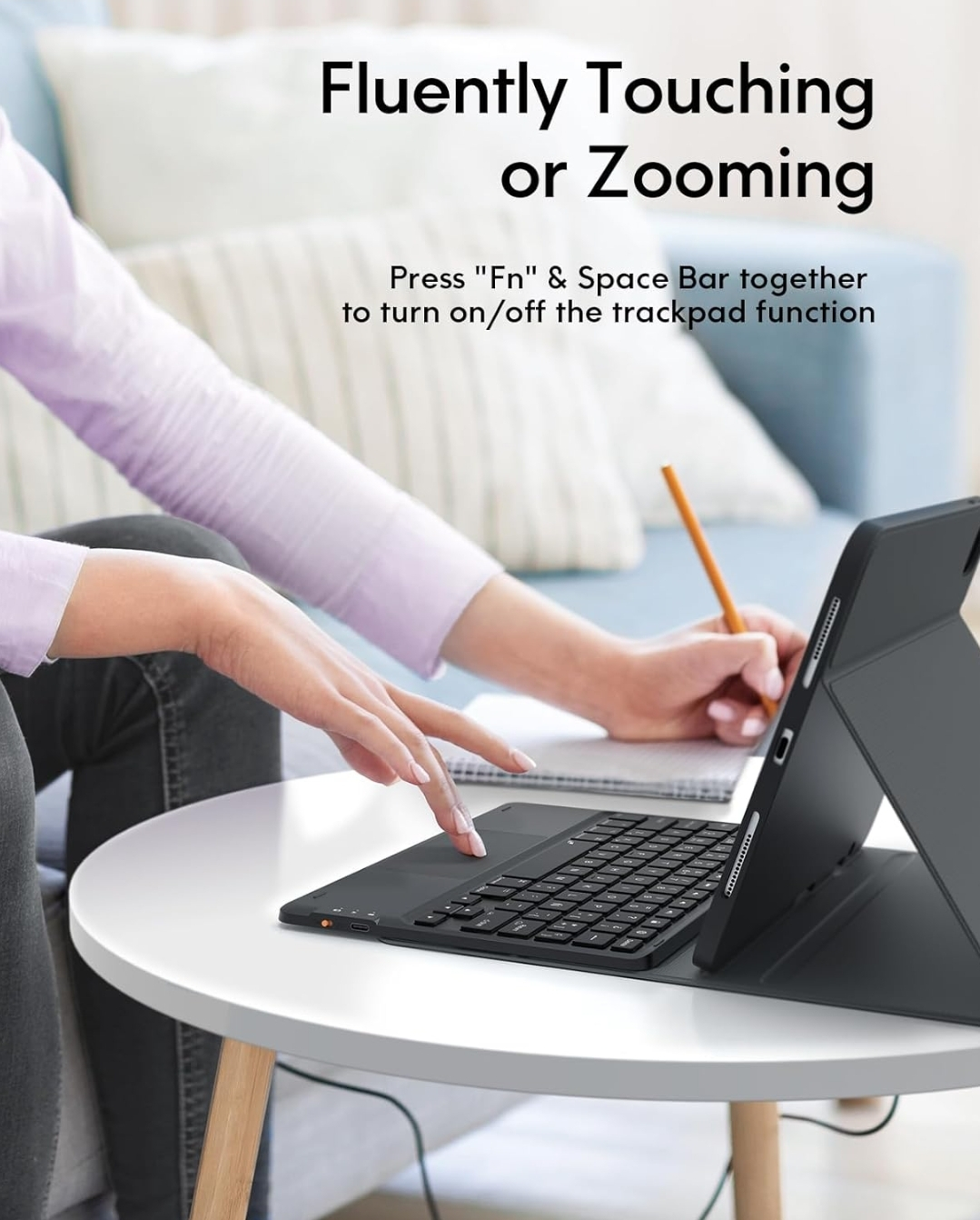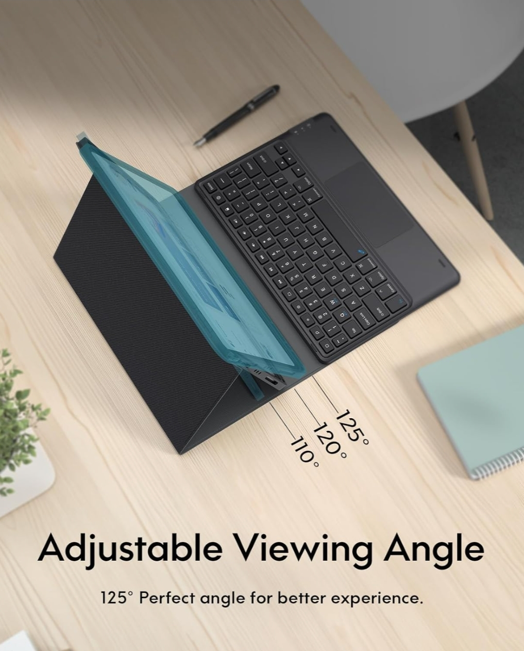 CHESONA Touchpad Keyboard Case for iPad Air 5th/4th Generation, Smart Trackpad, Rechargeable Bluetooth Silent Keyboard for iPad Pro 11 inch 4th/3rd/2nd/1st Gen, iPad Air 10.9" 5th 2022/4th 2020, Black ◇☆♡☆♡☆♡☆♡☆◇ ☆`New | 》✨️ $50 --->Pick Up @ Scarborough Golf Club Road & Lawrence East. --->May Deliver / Ship For Additional Cost --->May Meet Locally BE SURE TO CHECK OUT MY OTHER LISTINGS FOR MORE AWESOME DEALS! Thank you. ◇☆♡☆♡☆♡☆♡☆◇ CHESONA H309B Series Keyboard Chase for better cost-effectiveness, surf a high-quality typing experience, H309B makes an impressive and comfortable feeling for you. Laptop-like Typing Detachable Easy to Carry Enlarged Trackpad & Keycaps Multi-touch gesture recognition, fluently typing can optimize your workflow. Adjustable Viewing Angle Three rows of the build-in card stand inside the case support 110/120/125 degrees adjustment. You can move the keyboard and adjust the case onto different stands to get a suitable view. Multi-functional Trackpad The integrated trackpad has multiple gestures, such as clicking, scrolling, swiping, and zooming. Allows you to turn it into a mini-laptop. Type-C Rechargeable With a 210mAh Capacity Battery, the keyboard can work continuously for up to 70h. It usually takes about 1.5 hours for a full charge. Scissor-switch Structure Type with confidence on keys designed for your fingertips. The construction of scissors-kick keys can be used more than 3 million times continuously. Bring your better work experience Multi-Gesture touchpad for a laptop-Like typing experience Enlarged Keycaps and silent scissor-switch keys 3 adjustable horizontal stands & pencil holder H309B-BK