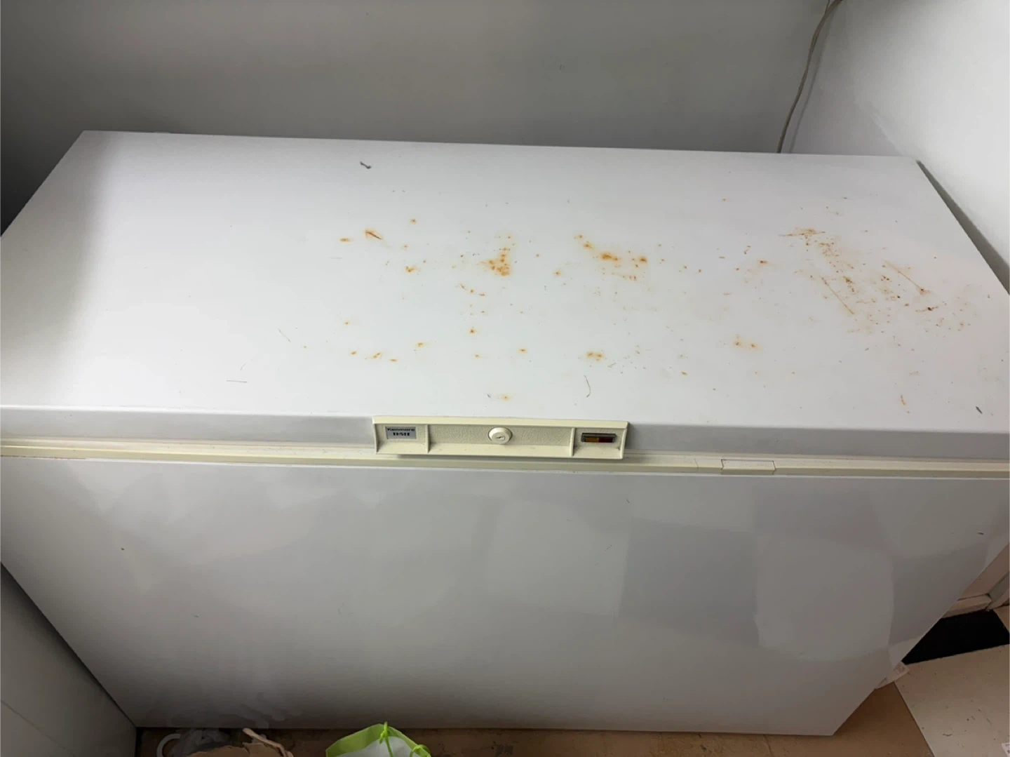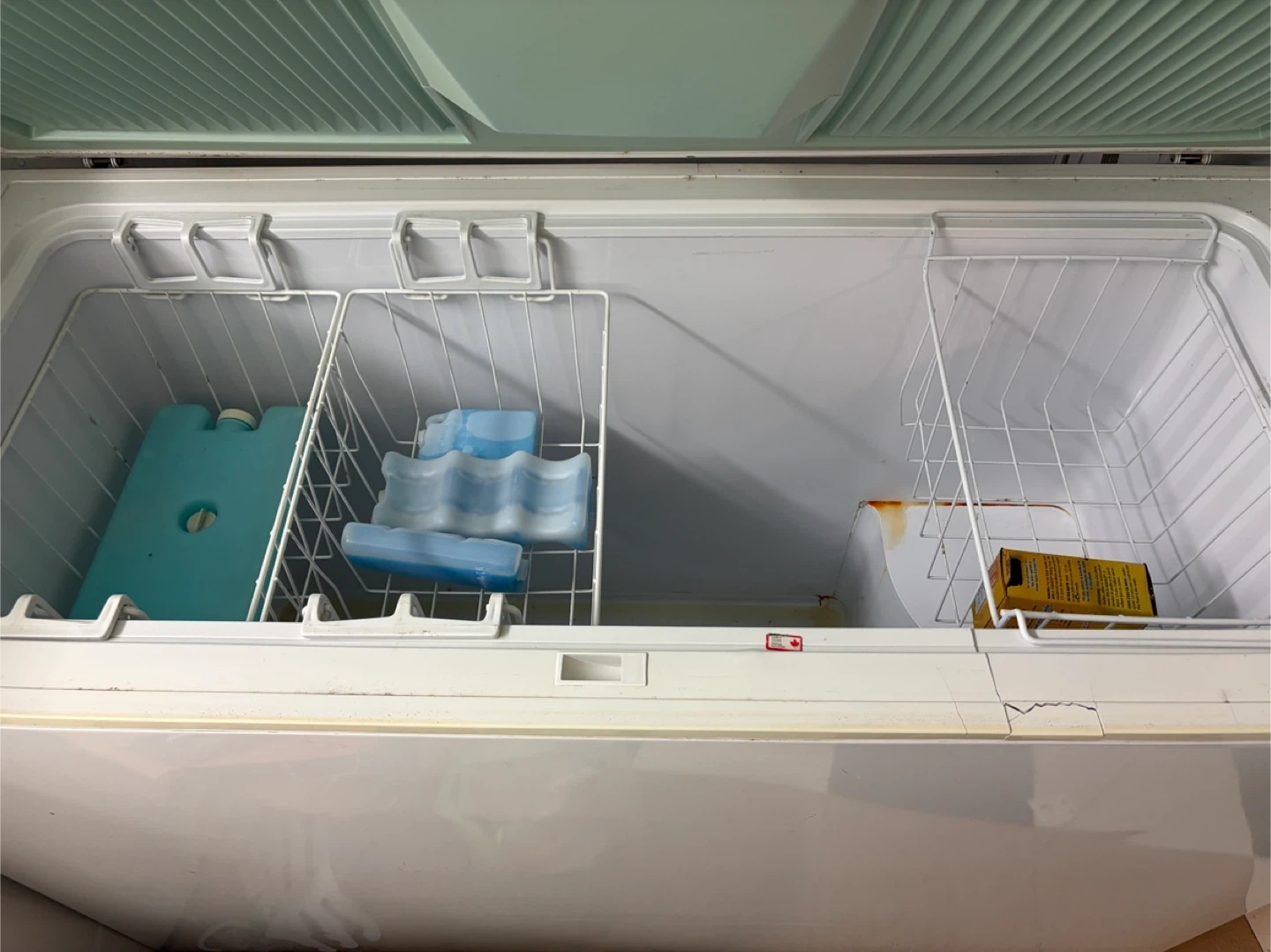 65Selling a chest freezer. It has some signs of use, including rust spots on the exterior and interior