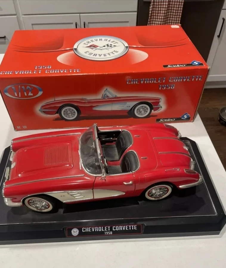Selling a diecast model of a 1958 Chevrolet Corvette. It's in great shape and comes with the original box. It's a 1/12 scale model and would be perfect for any car enthusiast or collector
