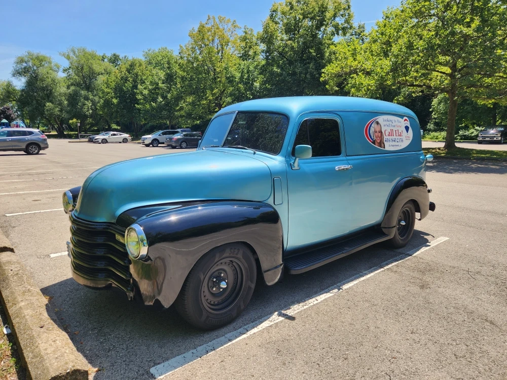 151947 Chevy Panel Truck For Sale. Gorgeous Baby Blue Paint Coat. Driven Only in Good Weather. No Rust. 350 Small Block Engine with approximately 41K Miles on it. Beautiful Cadillac Power Seats installed. Quality Vintage Look-Very Comfortable Seats. Also have Extra New Bucket Seats if Interested. Vehicle Used for Business Promotional Advertising. Very Rare Find!!! Impossible to Find this Vehicle in Canada in this Great Condition! REAL EYE CATCHER when out on the Road!!! And the Honk is Incredible! AMAZING FOR BUSINESS ADVERTISING & PROMOTIONAL PURPOSES. Pure Treasure! SOLD As Is $34,900 or Best Offer. Serious Buyers Only Please.