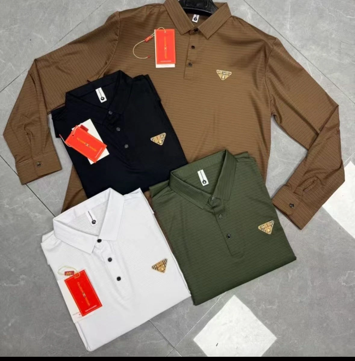 Long Sleeve Polo Shirts - Brown, Black, White, Green