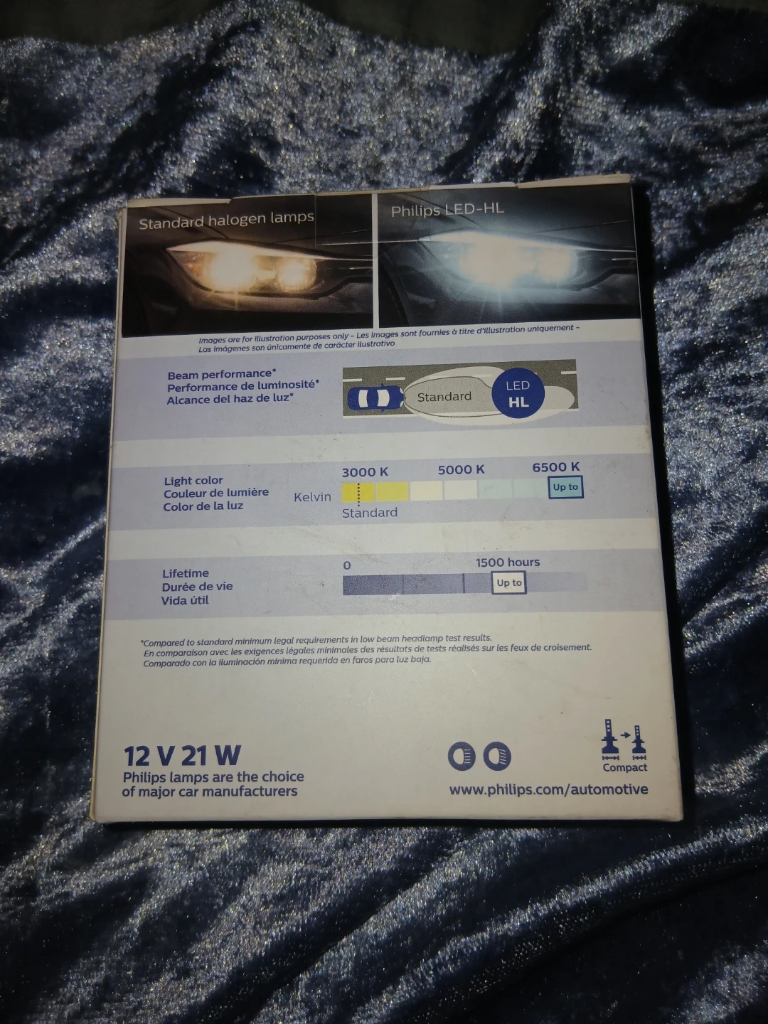 Philips LED-HL Ultinon Essential LED headlight bulbs for your car. Fits major car models and provides powerful brightness. 12 V, 21 W.