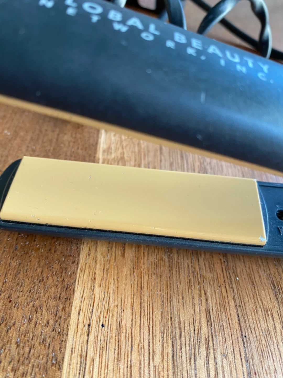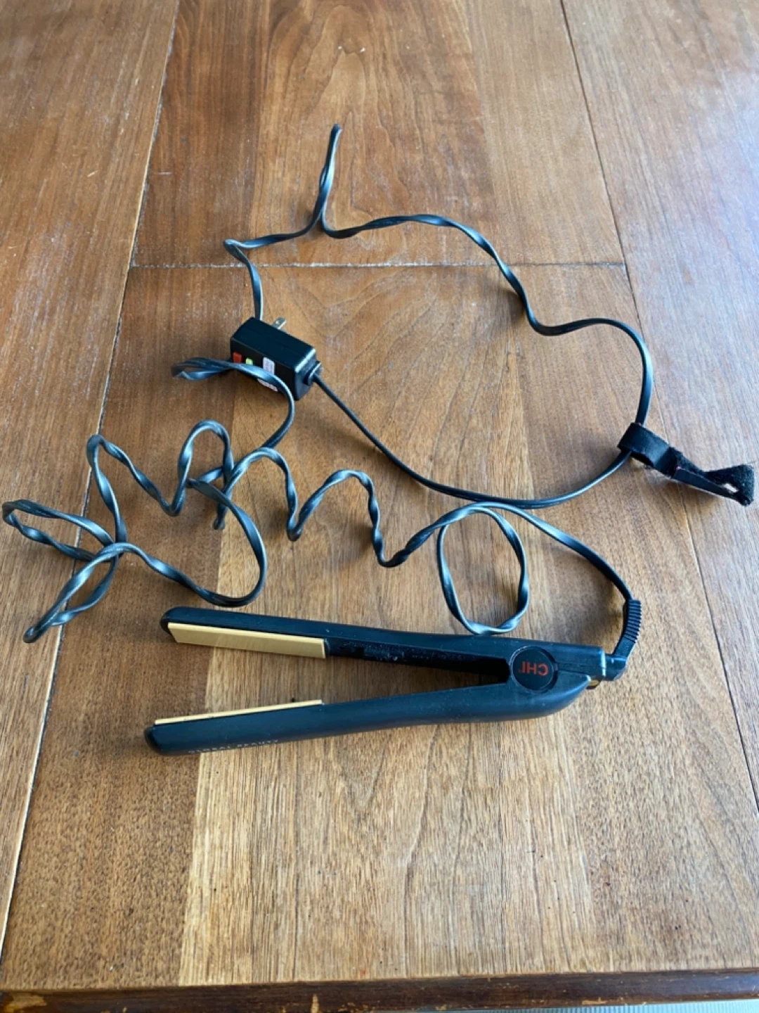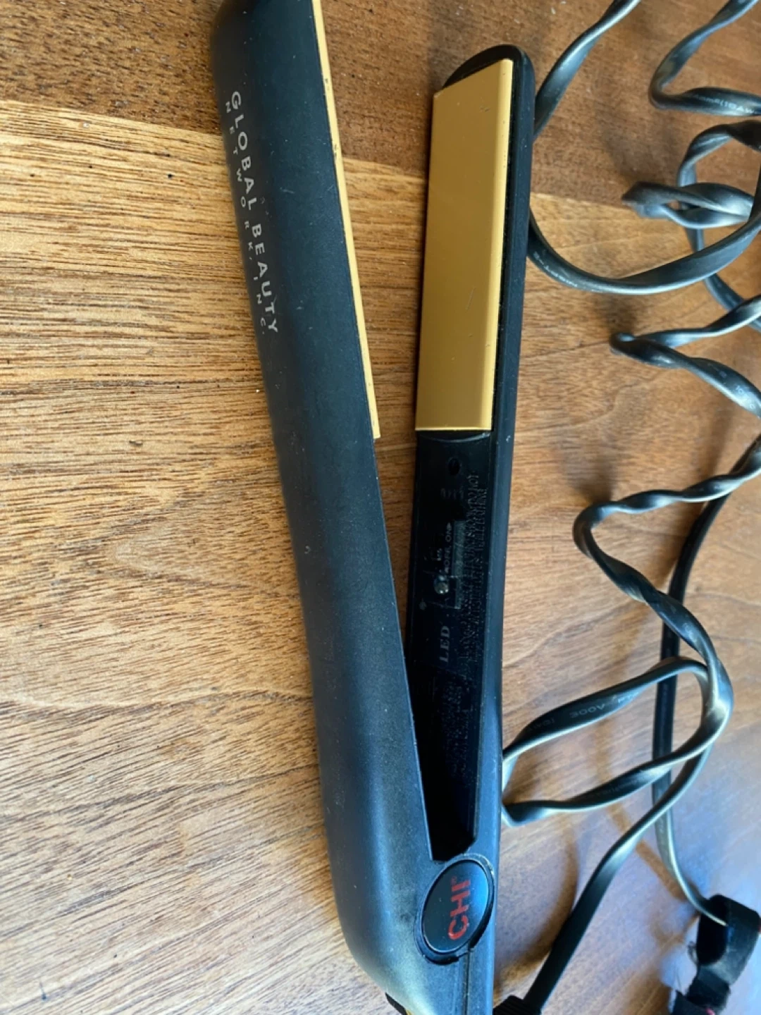 15Selling a CHI flat iron from Global Beauty Network. It's black with gold plates. There are some minor scratches on the plates, but it still works great!