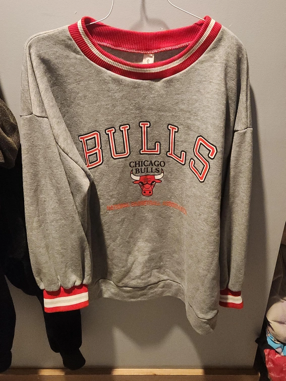 15Selling a Chicago Bulls sweatshirt! It's grey with red and white accents. Perfect for showing off your team spirit or just staying cozy