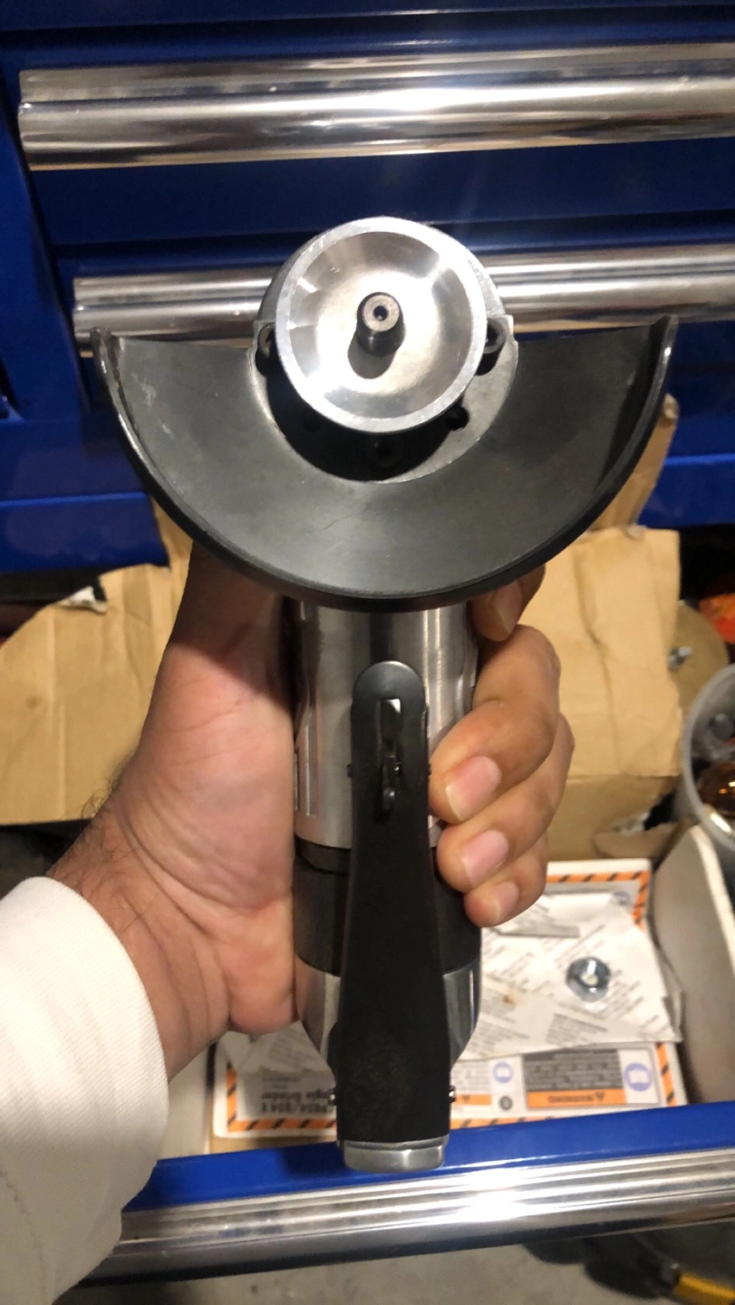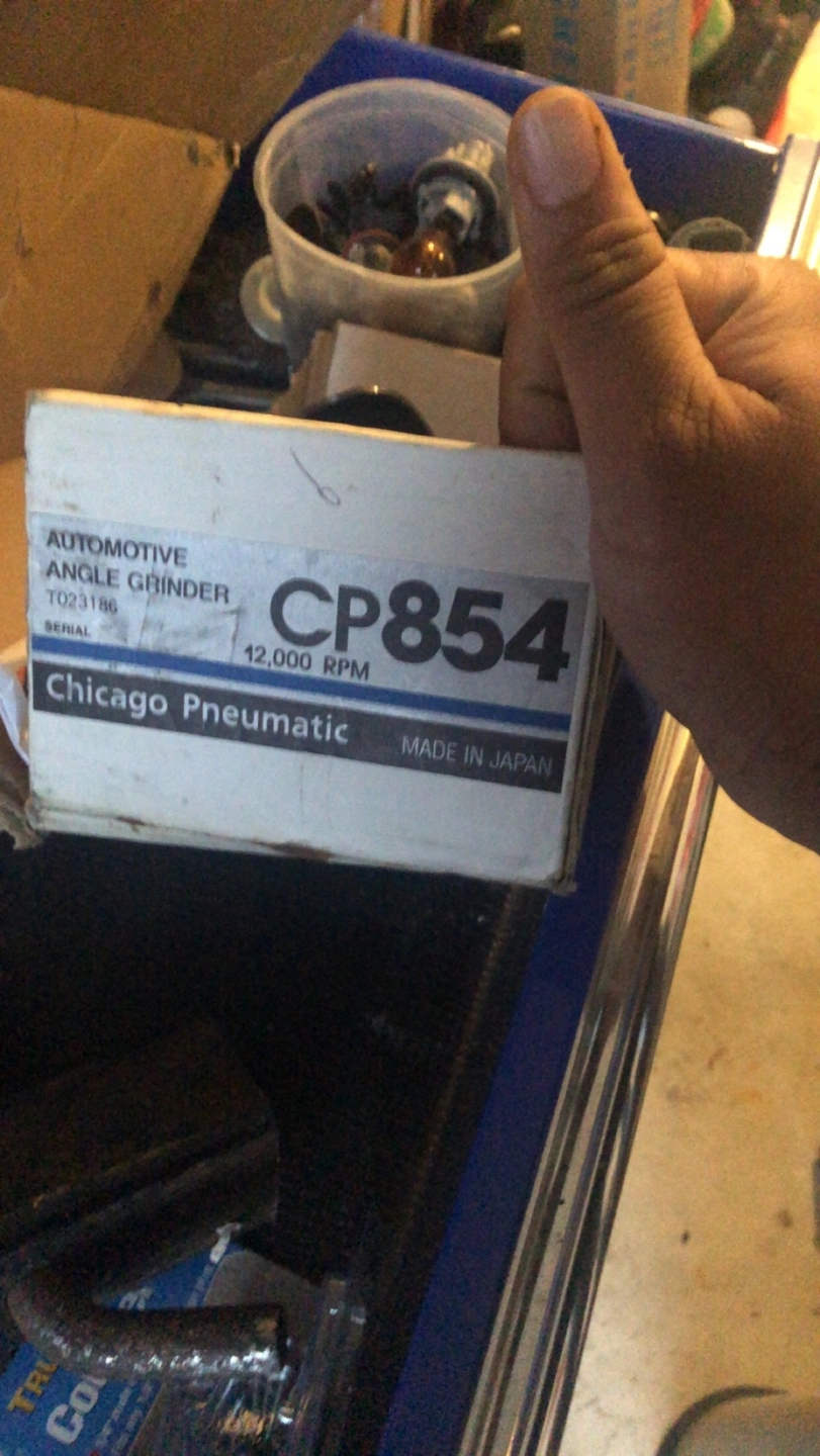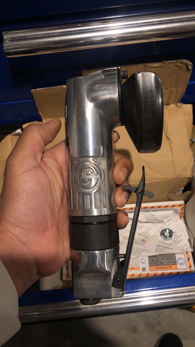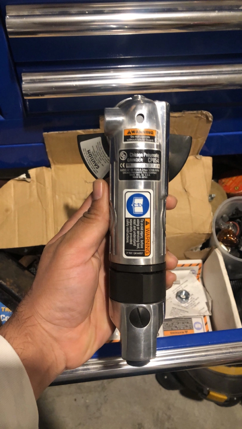 Chicago Brand air powered Automotive angle grinder. 12,000 RPM. New. Boxed is damaged from being stored Missing twist on handle