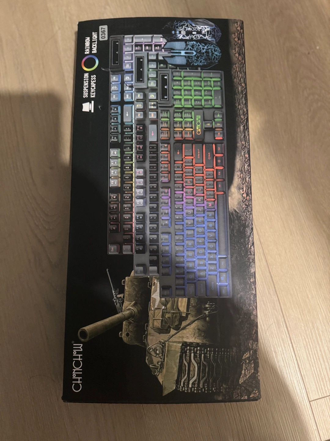 Wired gaming keyboard. Features multimedia keys, rainbow backlight and a tank design. Brand new never used