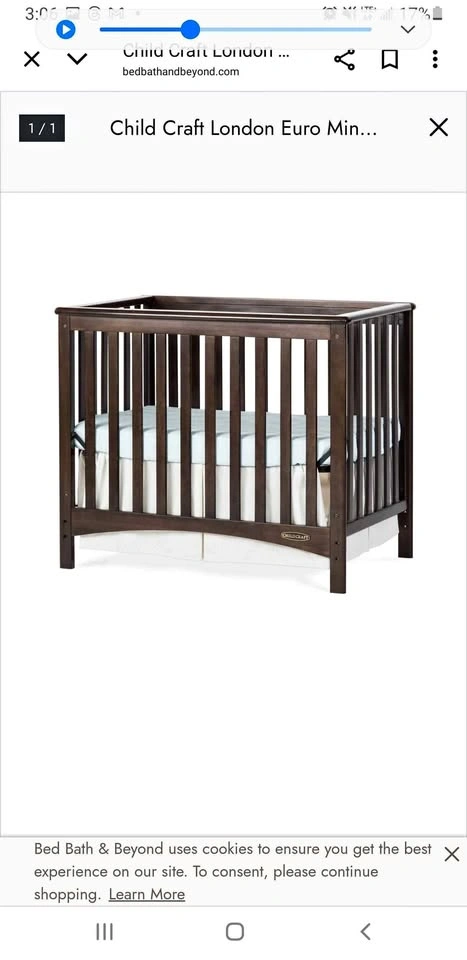 15Space saving crib. Minimalist design — perfect for small nurseries, condos, or grandparents’ home. Includes a matching mini crib mattress, both in good condition. From a clean, smoke-free, pet-free home. Ready to go to a new little one ✨ Unassembled. Pickup only.