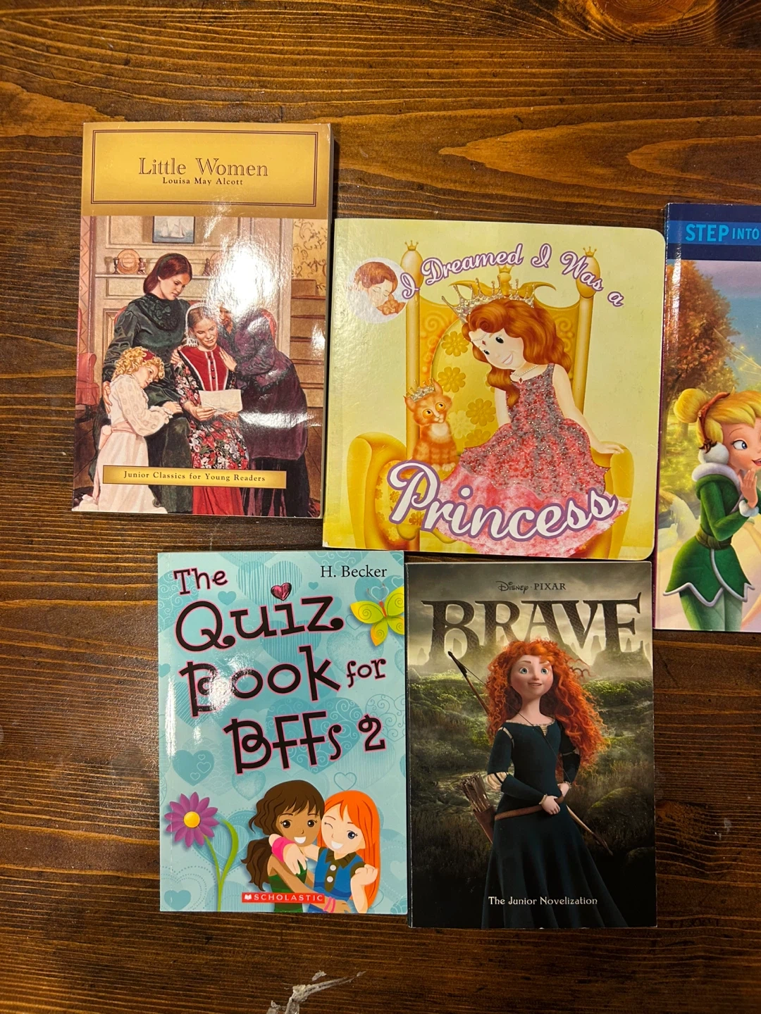 78Selling a collection of children's books in great condition: - Little Women by Louisa May Alcott (Junior Classics for Young Readers) - I Dreamed I Was a Princess - The Quiz Book for BFFs 2 by H. Becker (Scholastic) - Brave: The Junior Novelization (Disney Pixar) - Disney Fairies: Secret of the Wings - New Friends - The Baby-Sitters Club: Claudia and Mean Janine by Ann M. Martin (Scholastic)