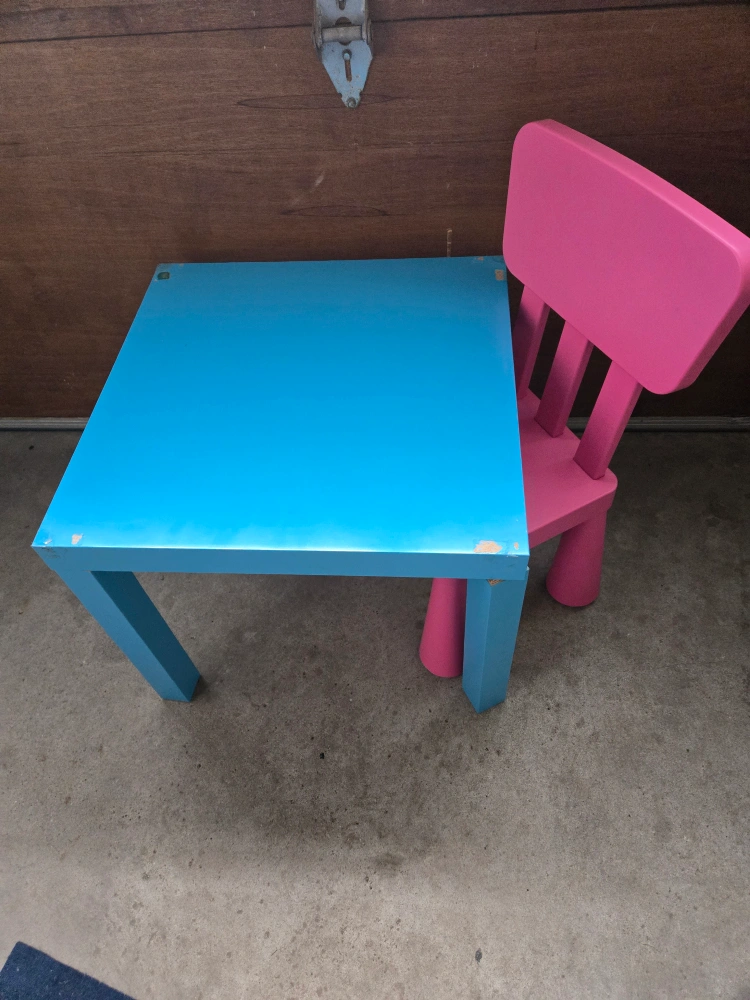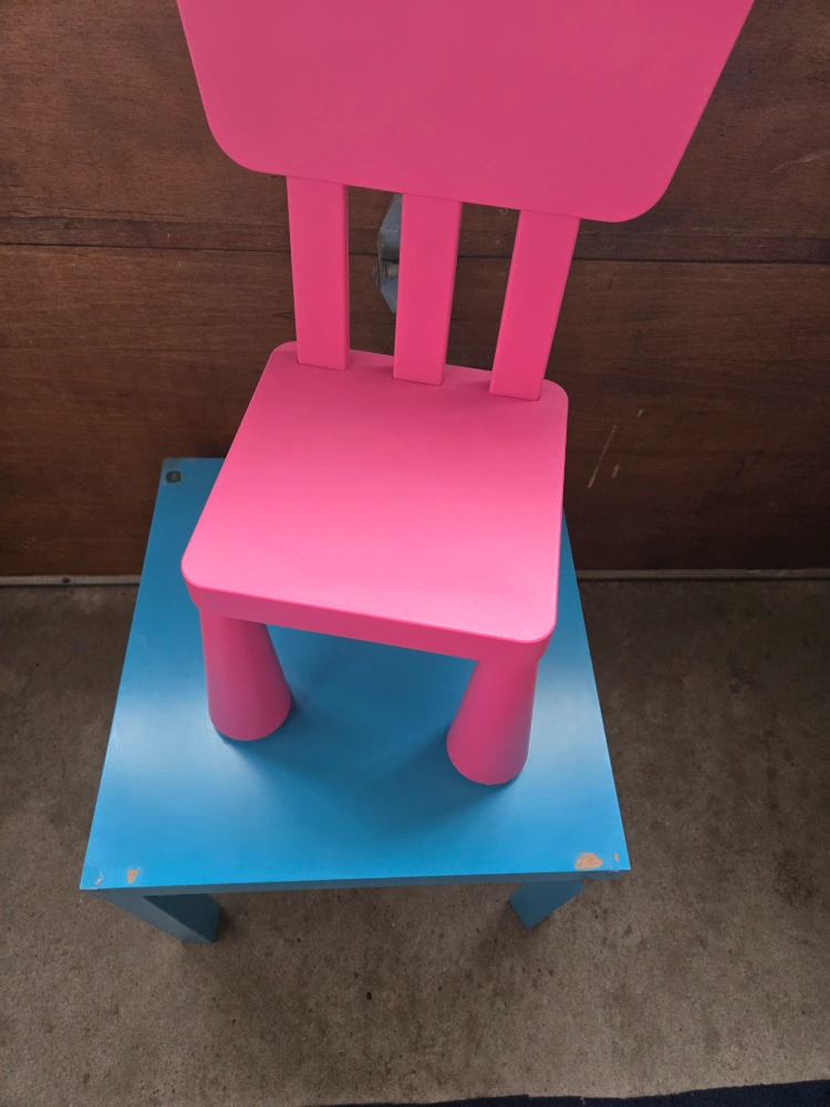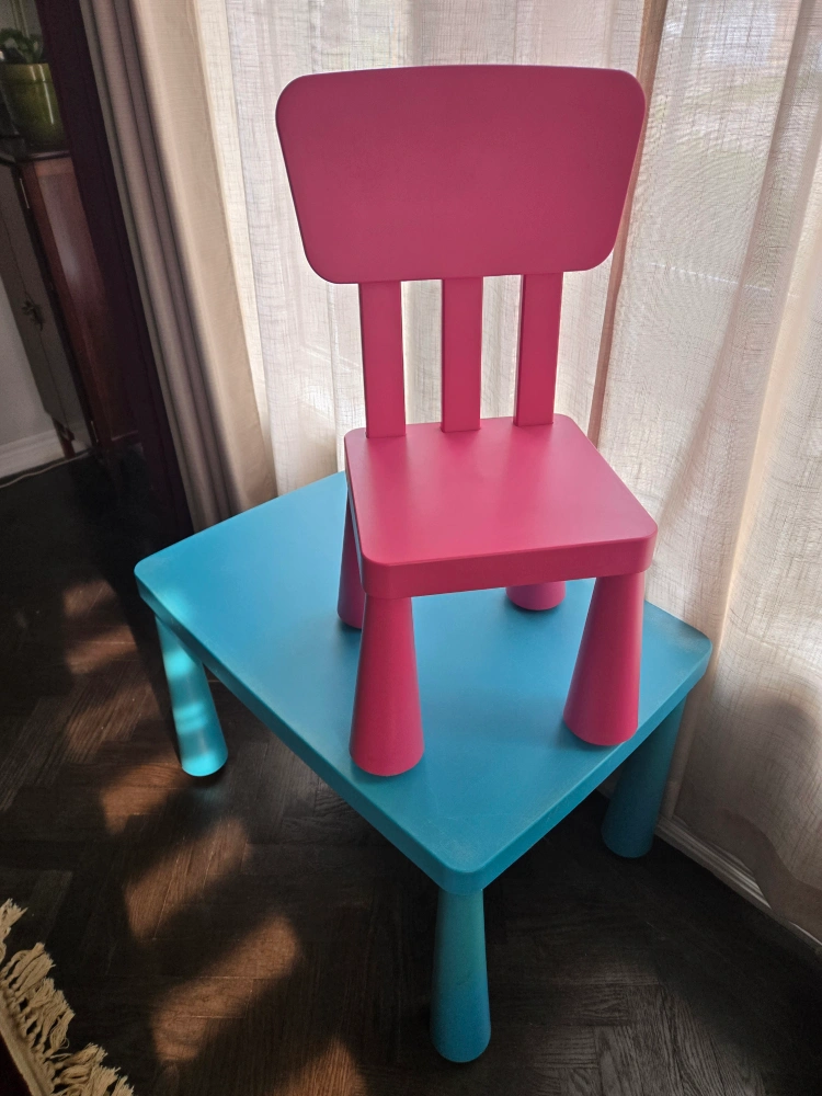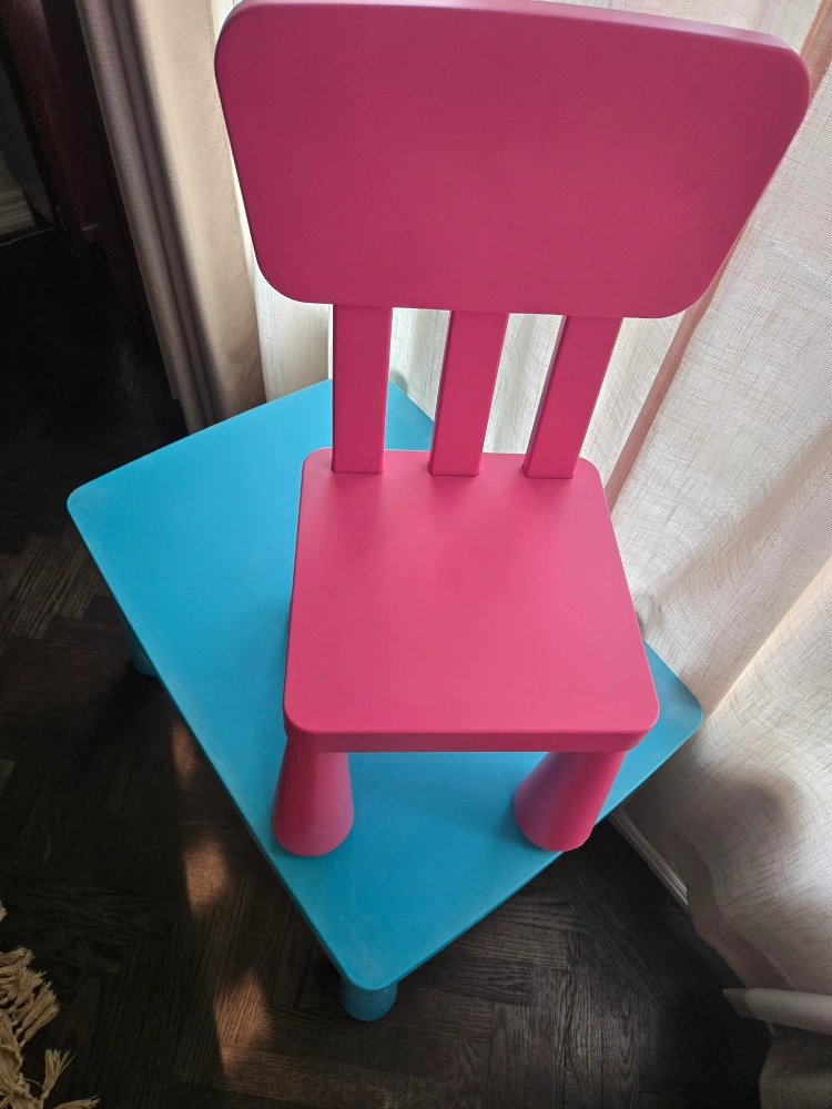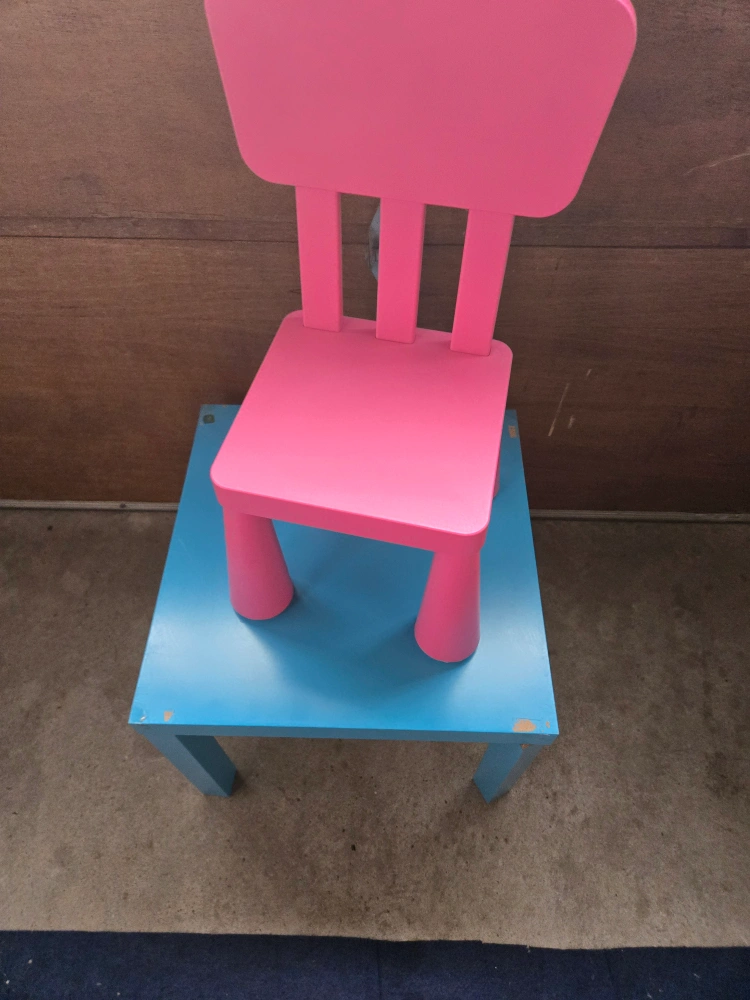A pink chair and aqua table. A simple, colourful set, perfect for your little one to enjoy their favourite activities. Consider it for a calming corner in your home.