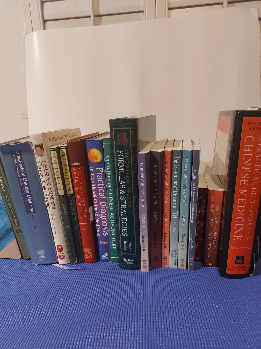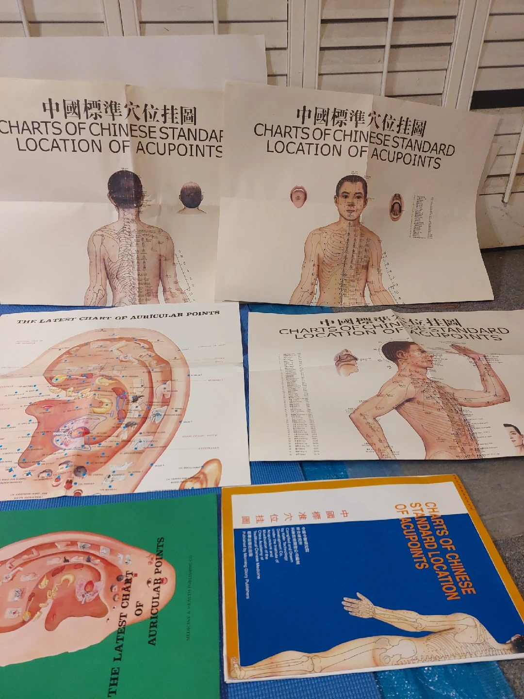 75A collection of books and charts related to Chinese medicine and acupuncture. Perfect for students or practitioners!