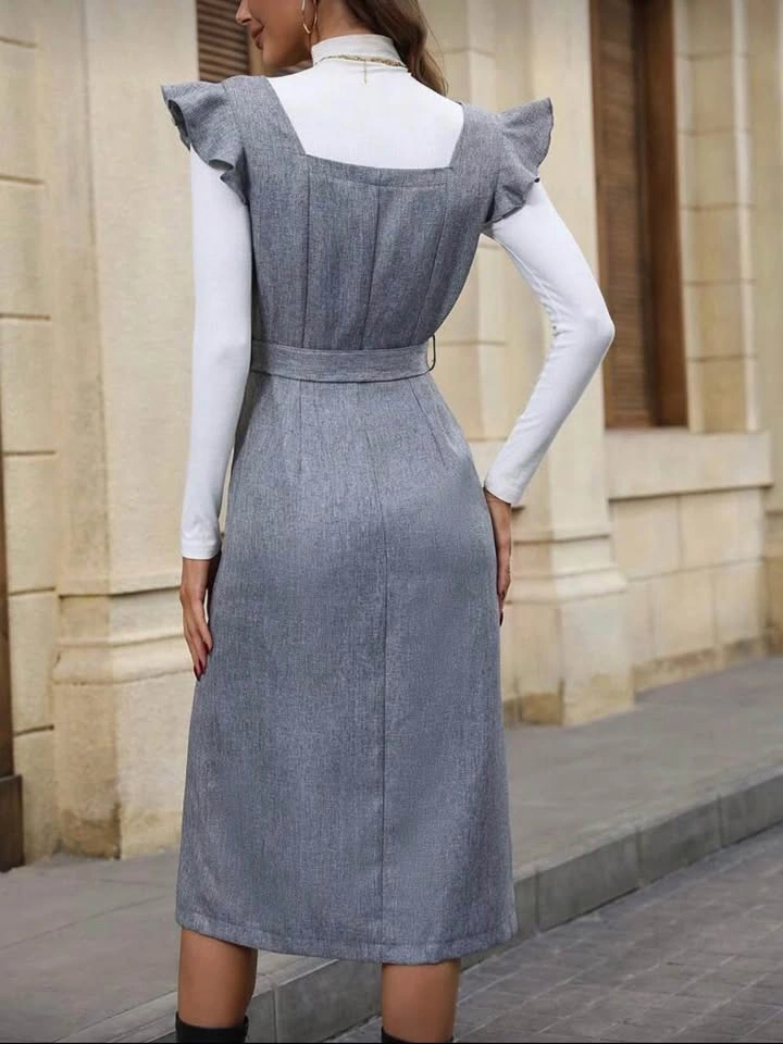 Modely Floral Print Flounce Sleeve Pleated Hem Belted Dress
