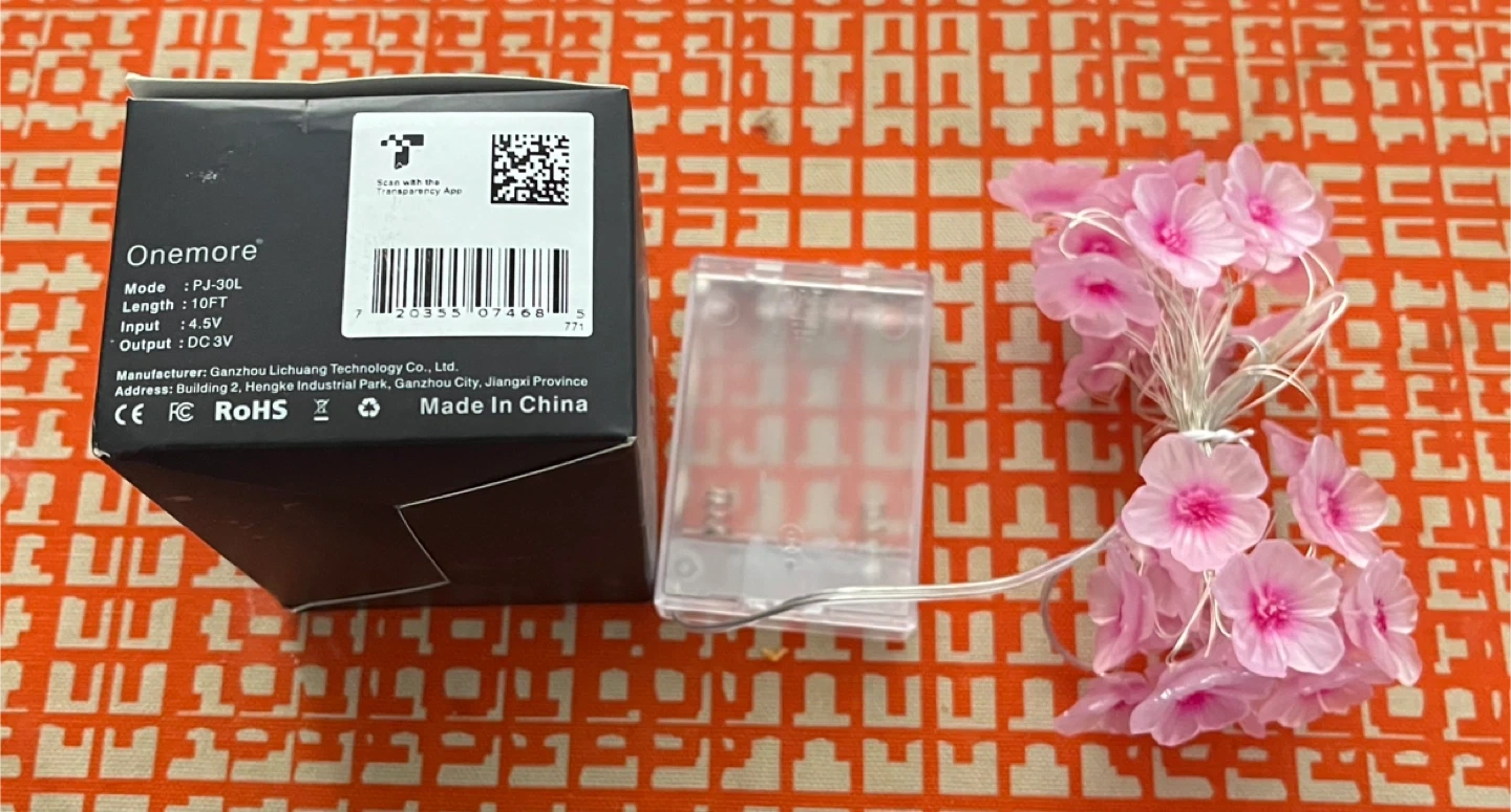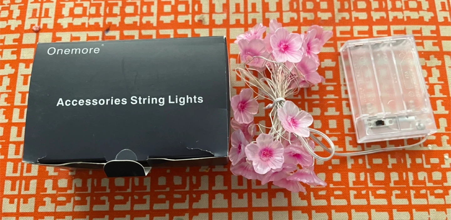 Onemore cherry blossom string lights. These lights are 10FT long and run on DC 5V. They're perfect for adding a decorative touch to any room or special occasion!