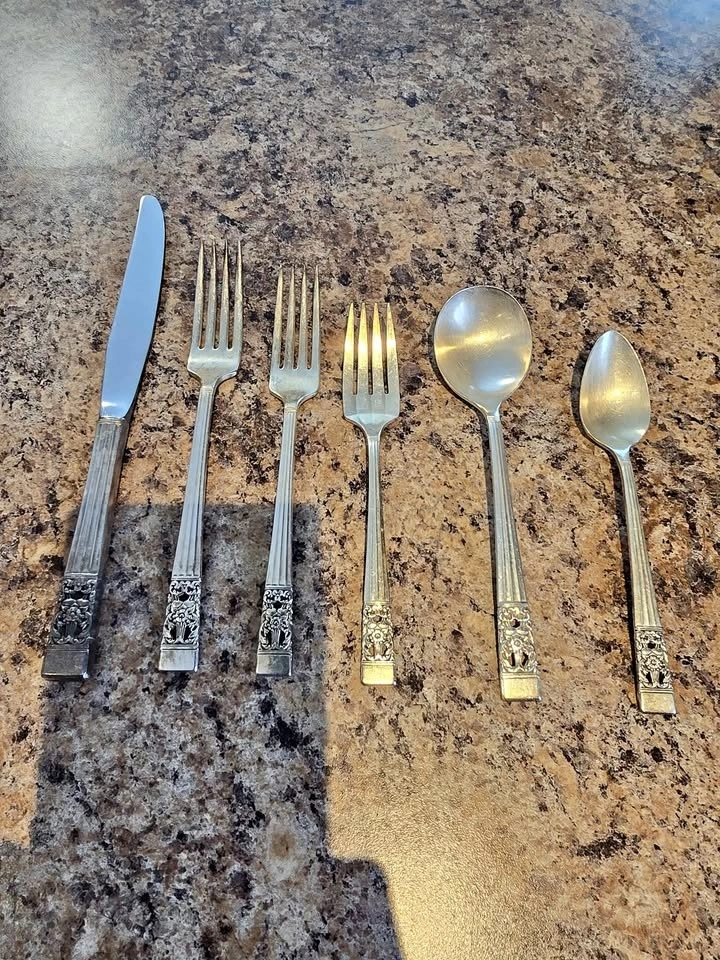 6-piece serving set of vintage Community Oneida stainless flatware. Set includes knives, large forks, medium forks, small forks, large soup spoons, and teaspoons. Extra soup spoons (6), knives (6), teaspoons (3), and small forks (3) are available for $5.00 each.