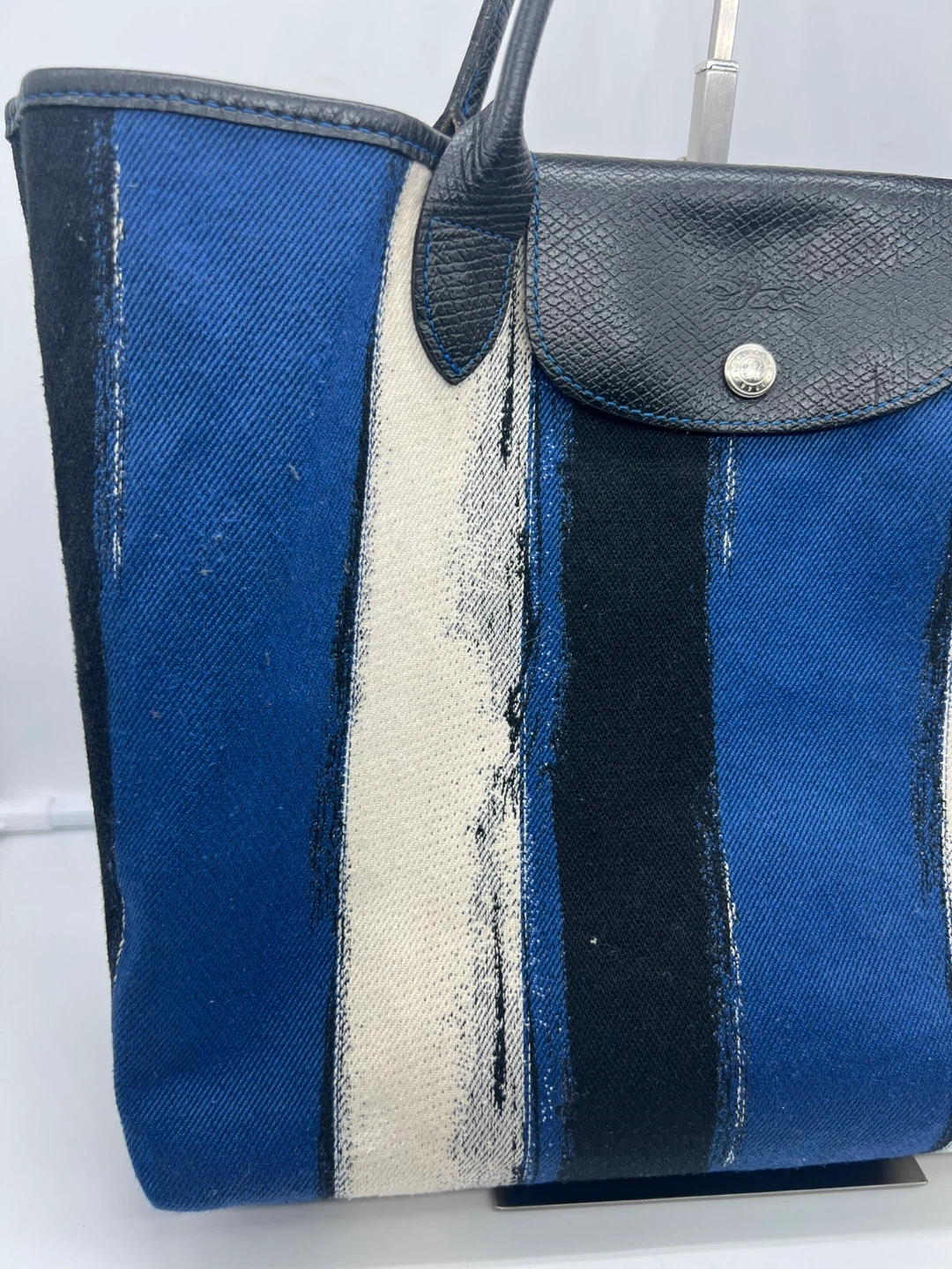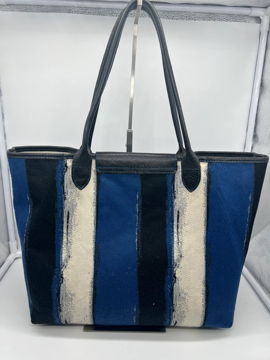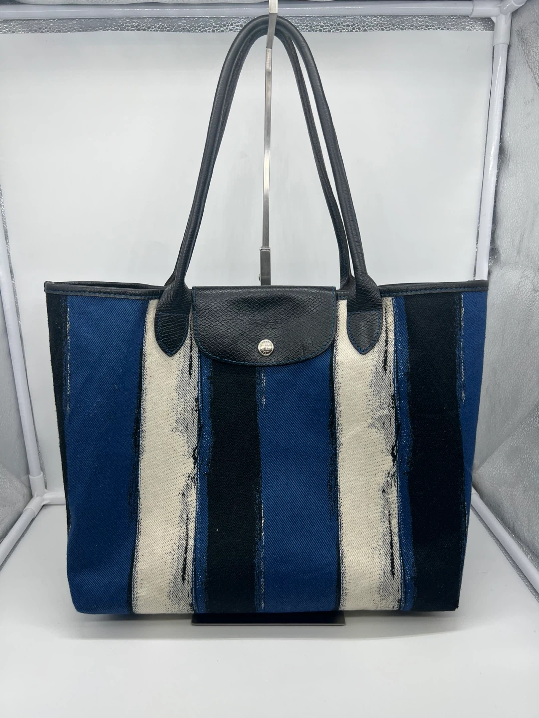 LONGCHAMP Coup De Pinceau Canvas Leather Trim Tote Shoulder Bag