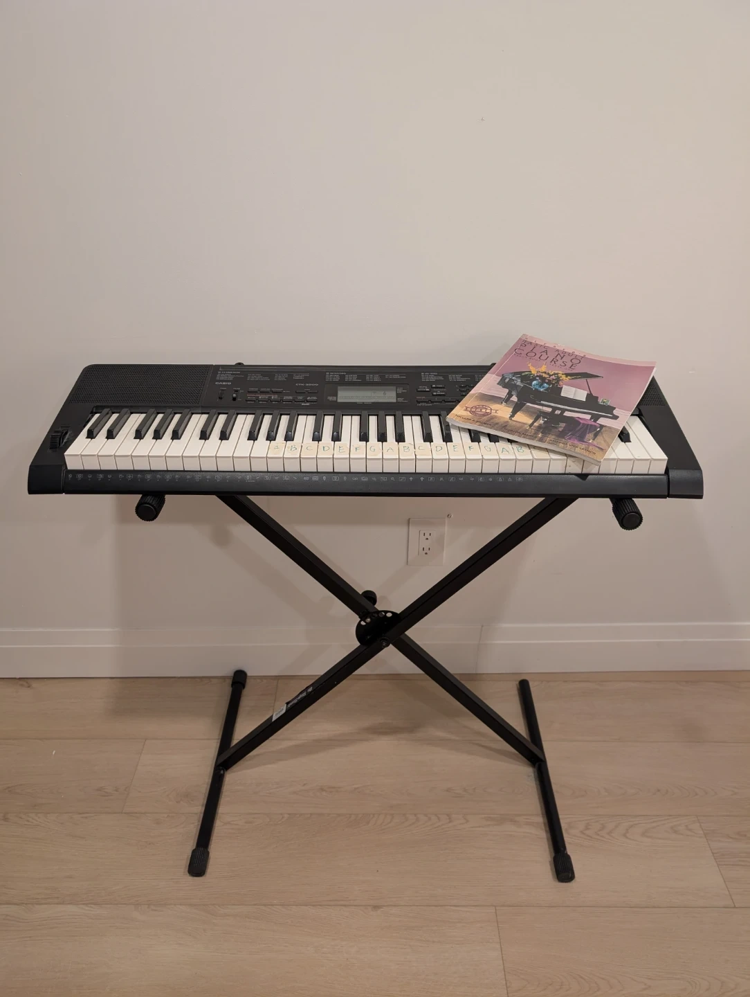 Casio Keyboard with Stand and Beginner Course Book
