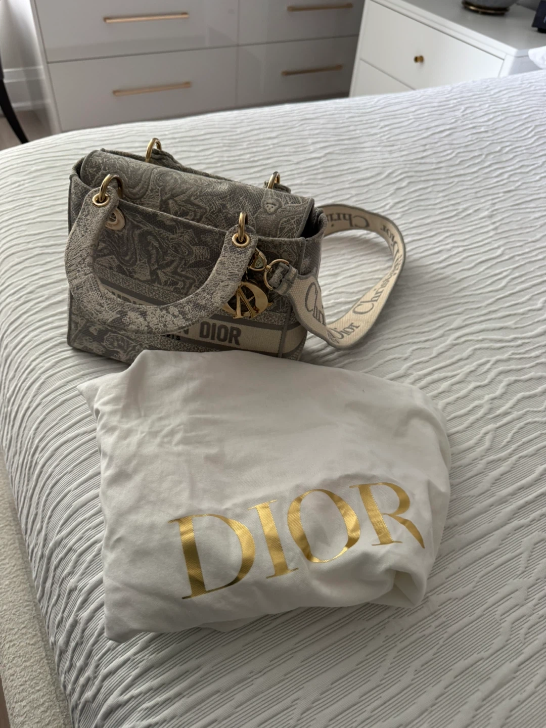 73Selling a beautiful Lady Dior bag. It's in great condition and comes with its original dust bag! The bag features a unique pattern and the iconic Dior charm. Perfect for adding a touch of elegance to any outfit