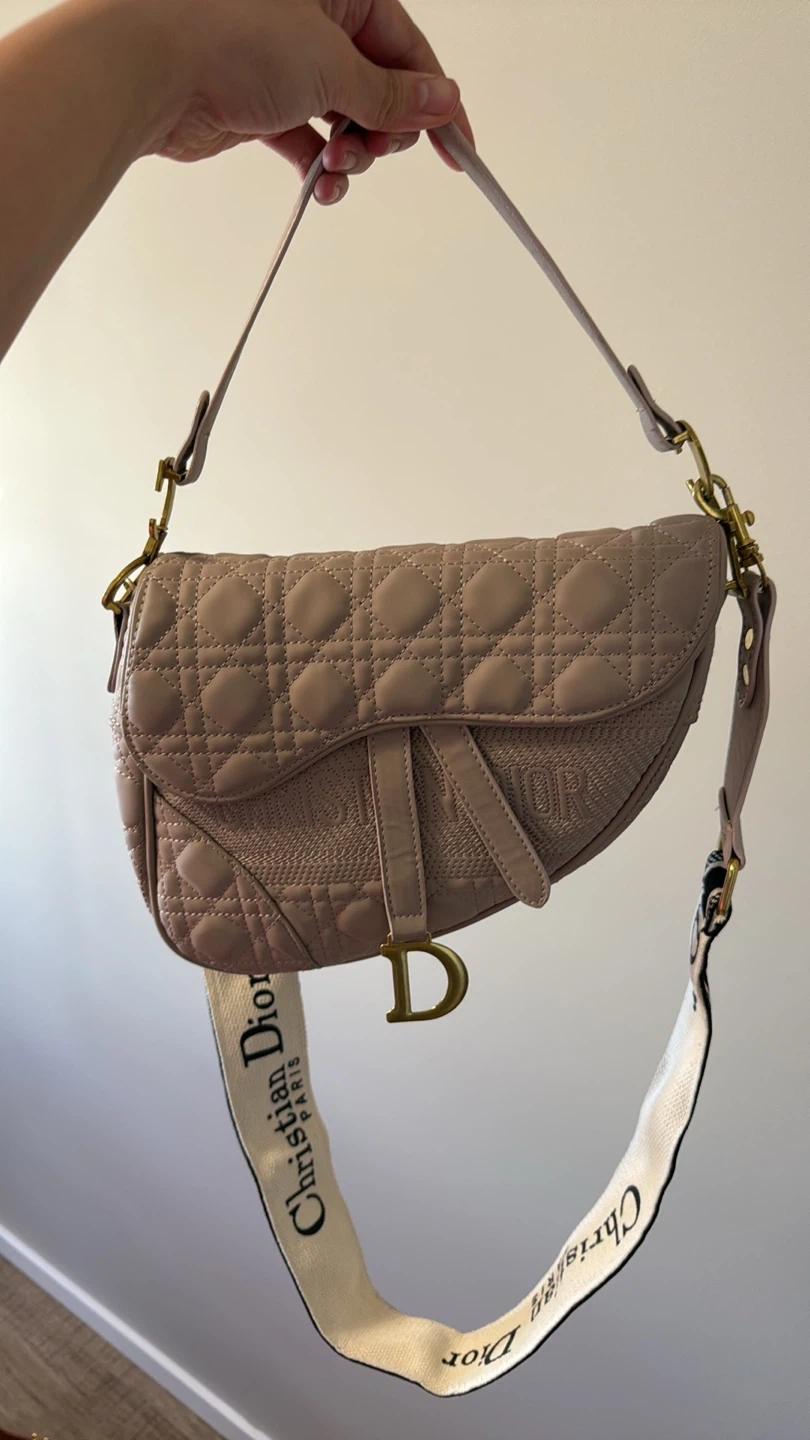 10Selling a Christian Dior Saddle Bag! It's in great condition and features the classic Dior logo and design. The bag comes with a stylish strap that says 'Christian Dior Paris'.